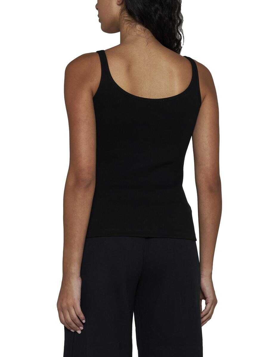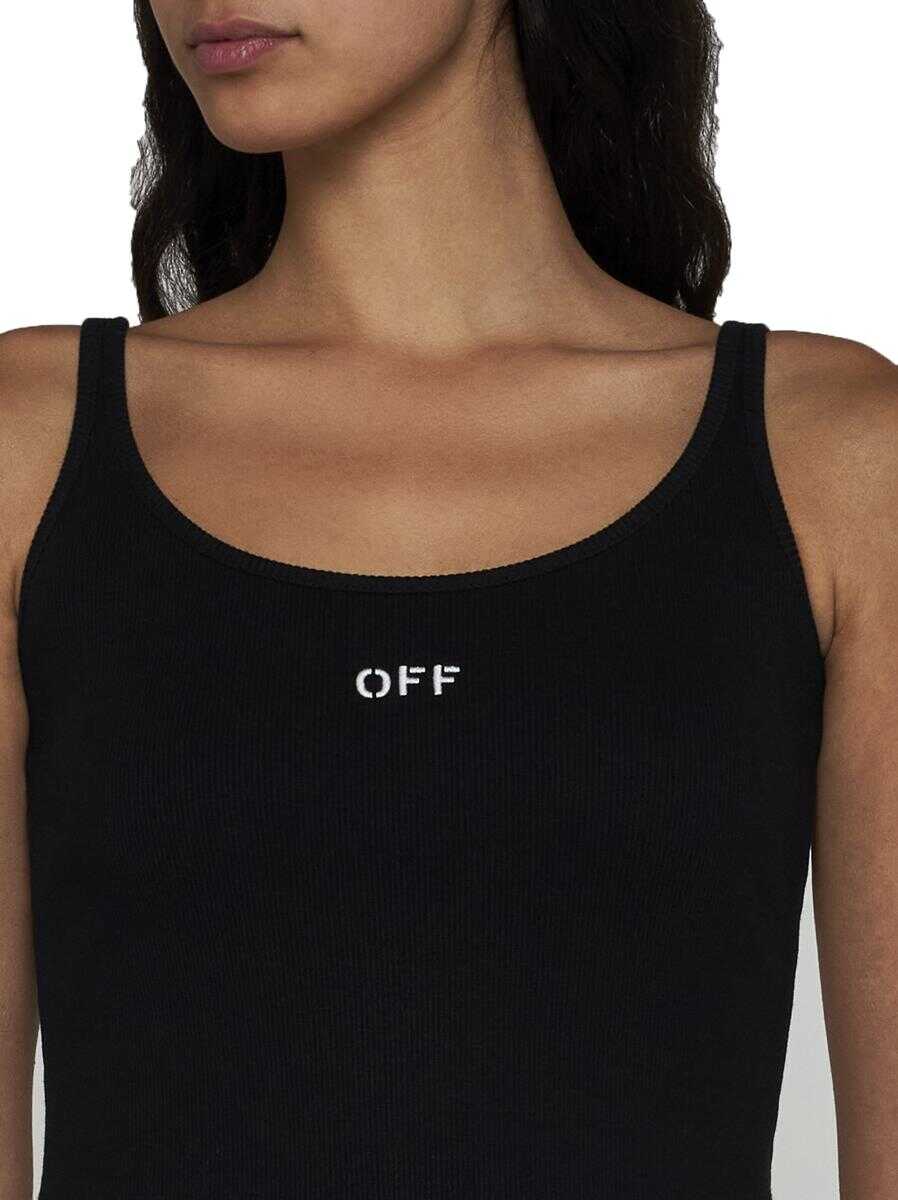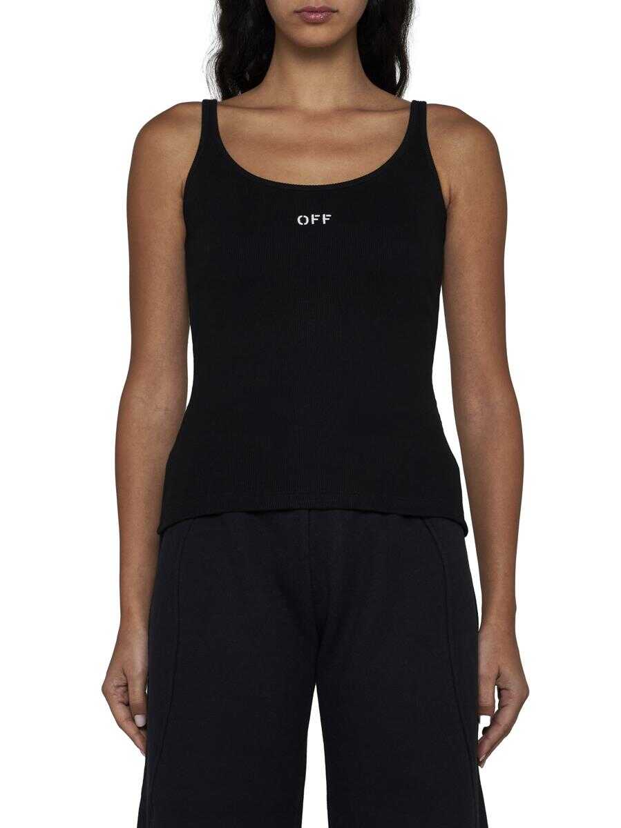 Off-White’s black ribbed knit cotton slim-fit tank top featuring a round neck and white Off logo embroidered on the chest.