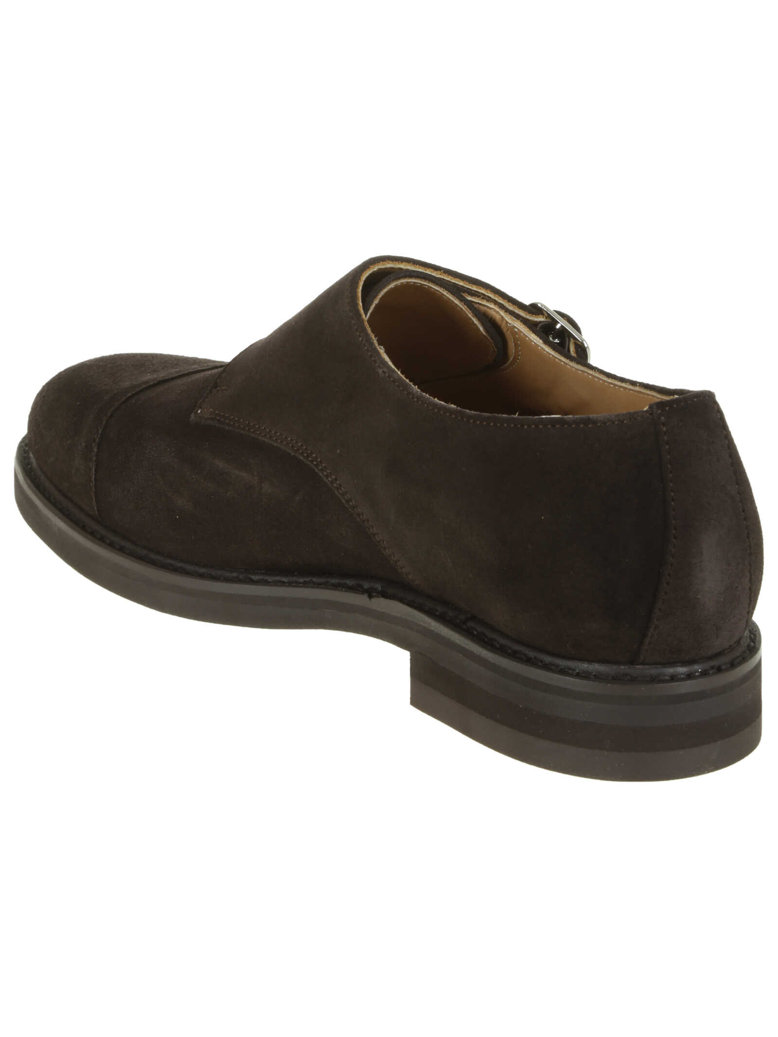 Berwick Double buckle shoe in brown suede, stitching on the toe, leather insole, rubber sole.
