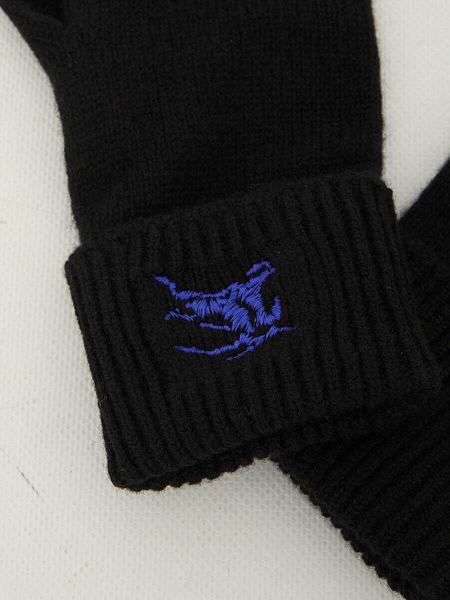 Gloves in black brushed cashmere blend with Equestrian Knight Design contrast embroidery. Rib-knit cuffs.