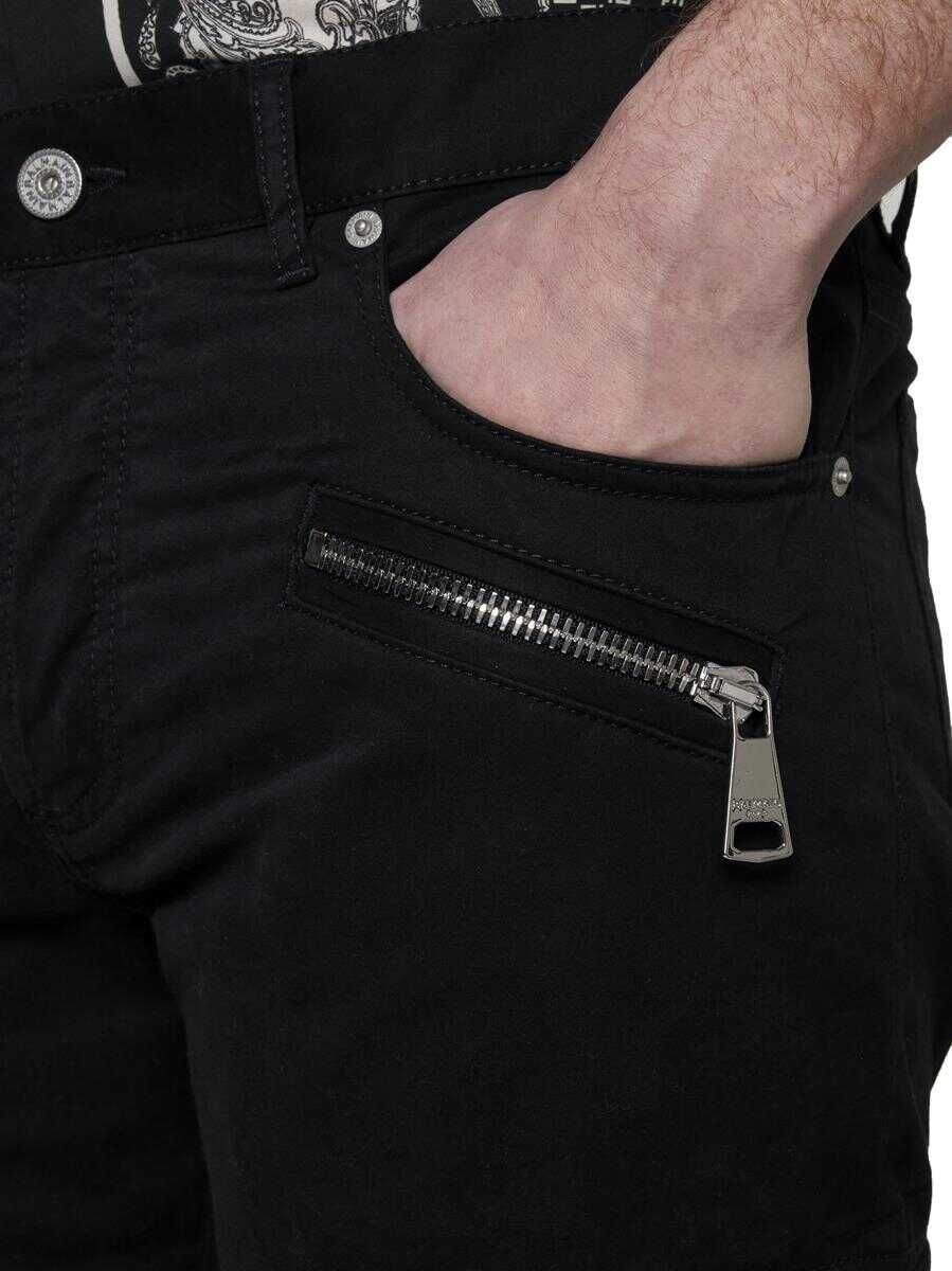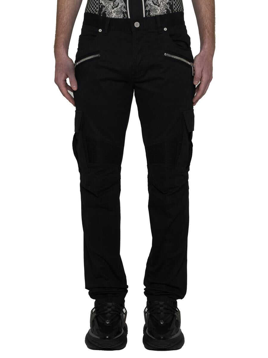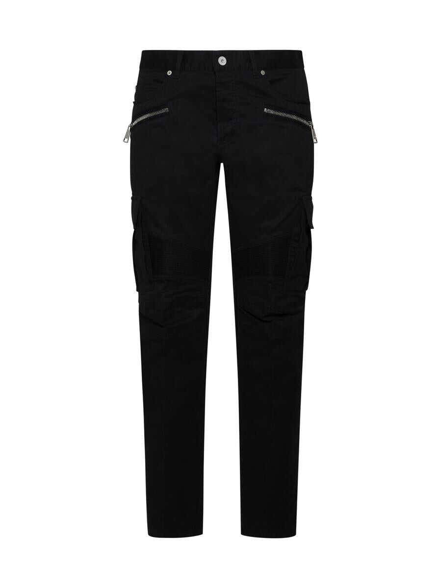 Balmain’s black stretch cotton cargo trousers featuring belt loops, button and zip fly, five pocket cut, front zipped pockets and side flap pockets.