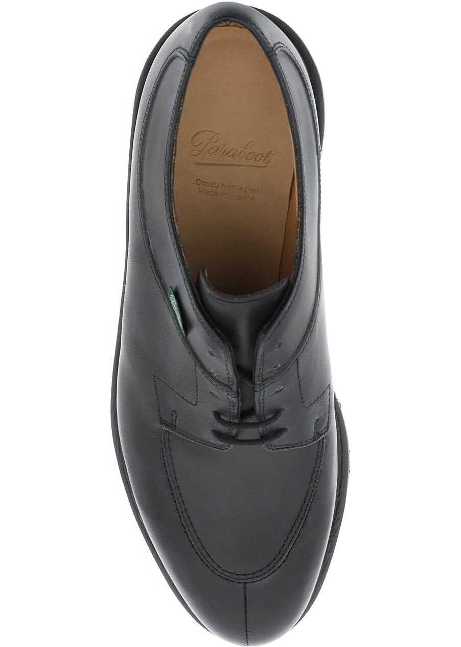 Paraboot Avignon derby shoes crafted in smooth leather with middle tip stitching, five-eyelets lace-up closure and side fabric logo tag. Leather lining and insole, Norwegian construction and rubber sole.