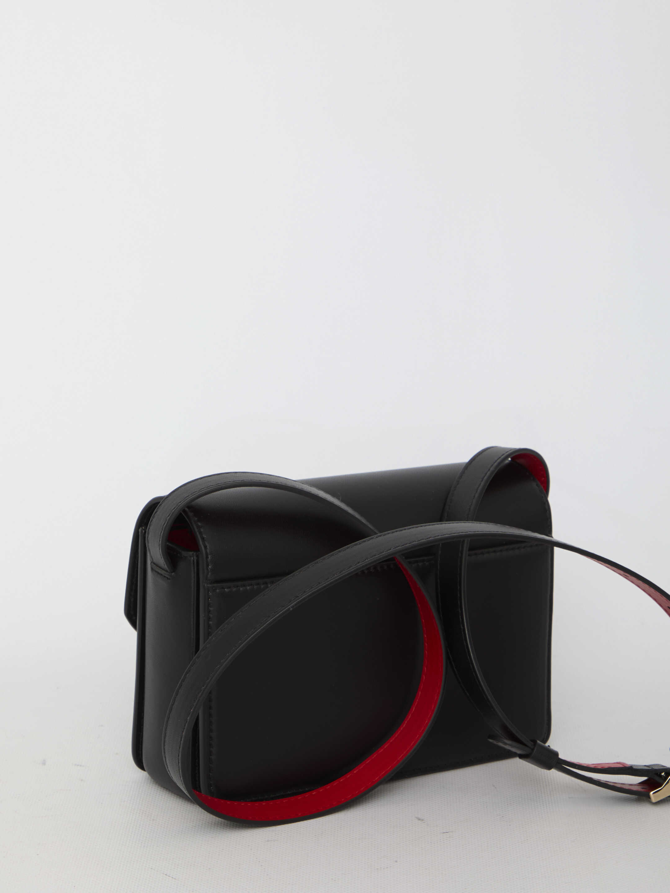 Loubi54 bag in black nappa with red leather lining. It features CL metal monogram on the front, adjustable shoulder strap, press-stud closure, one main interior compartment, one interior zip pocket and two interior flat pockets. One rear flat pocket.