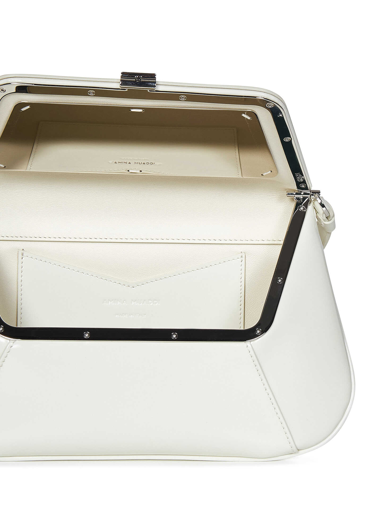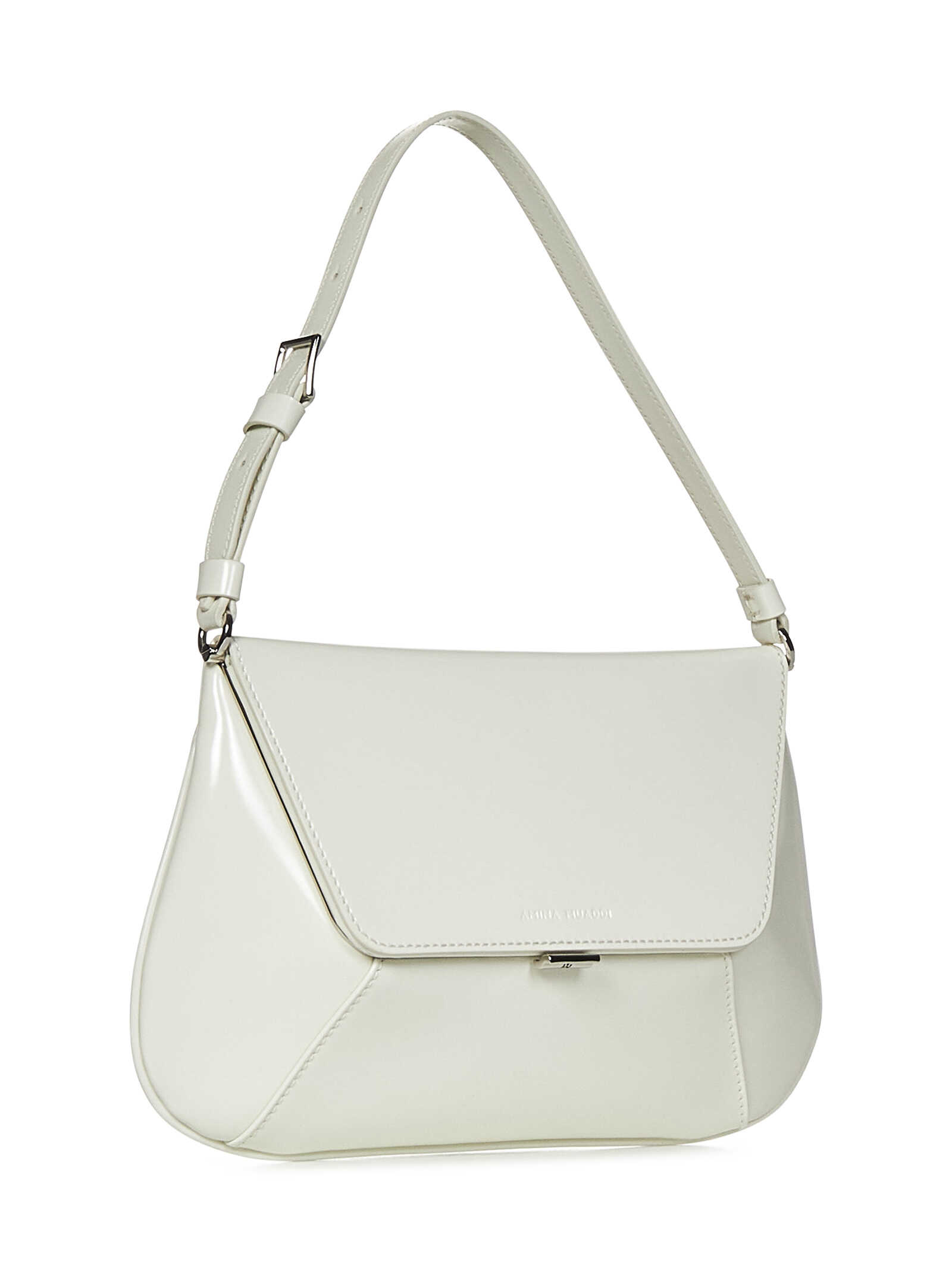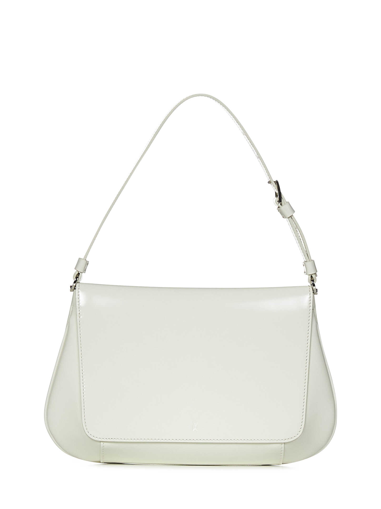 Shoulder bag in almond-coloured brushed calfskin with logo embossed on the front.