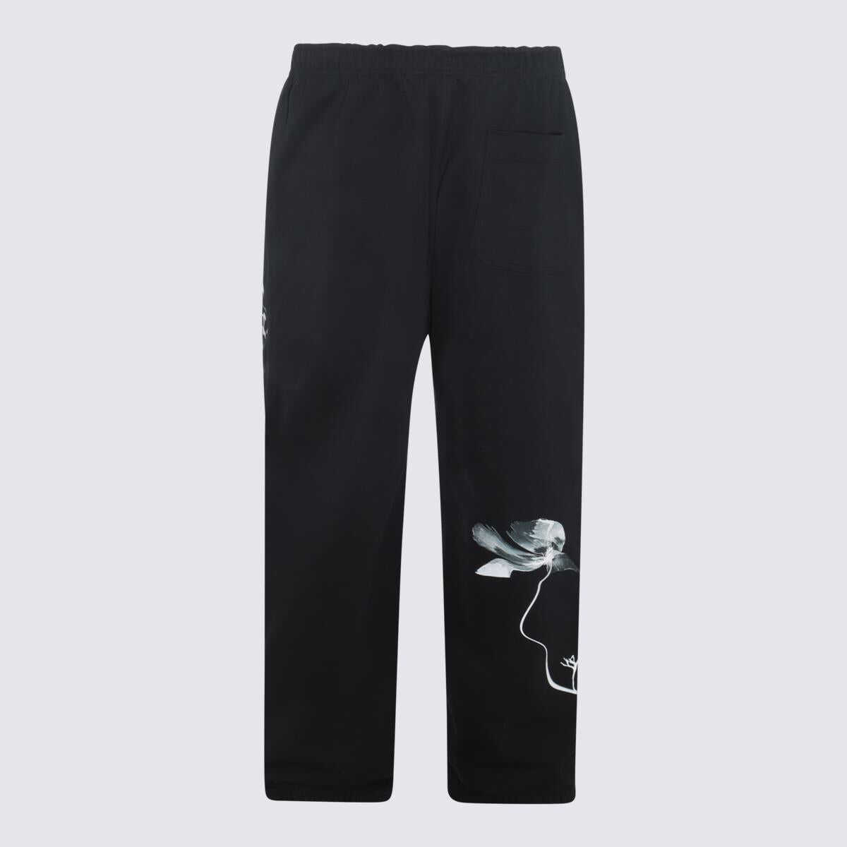 Black cotton blend pants from Adidas Y-3 featuring logo print to the side and rear, elasticated waist, two side pockets, rear patch pocket and relaxed fit.
