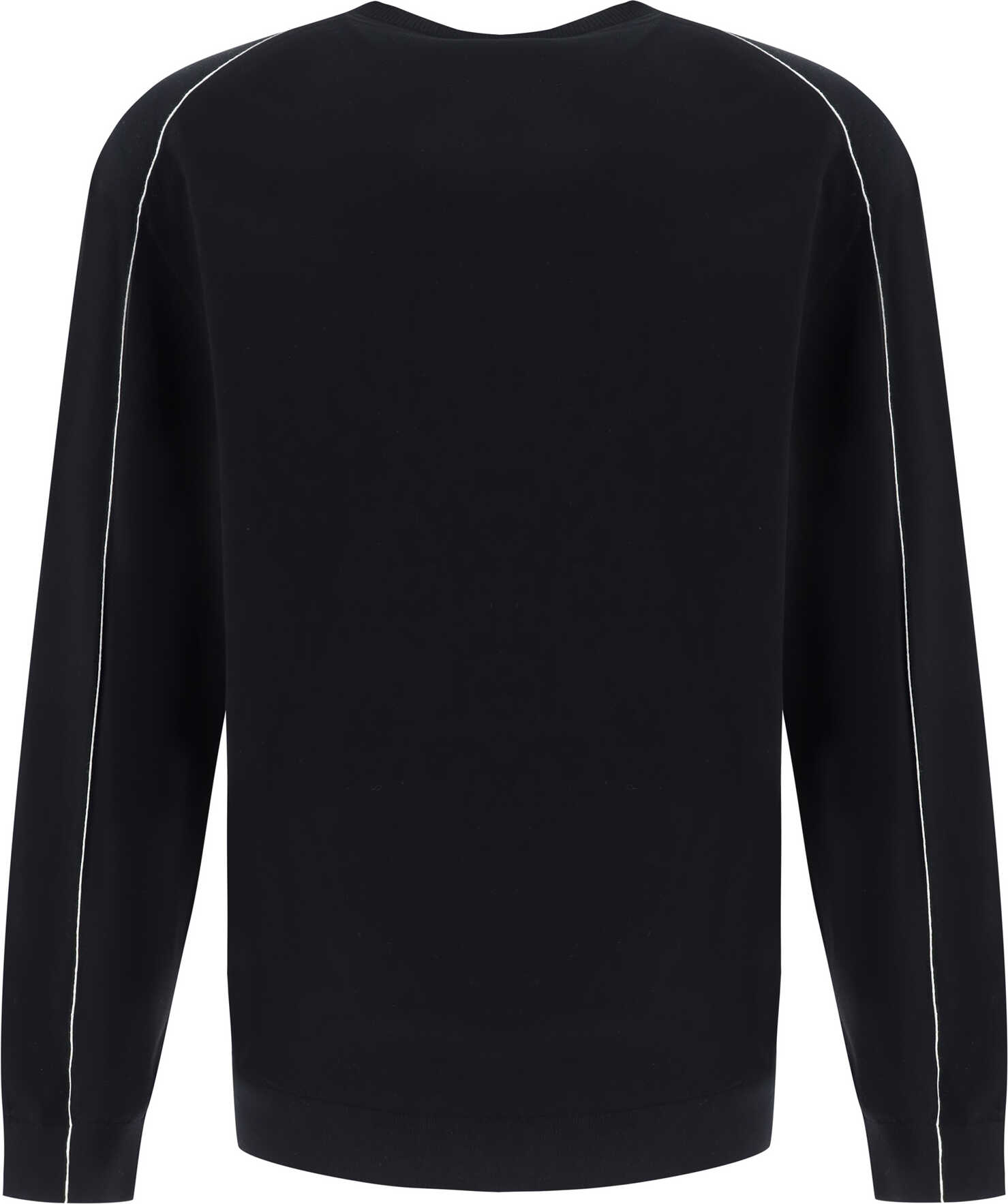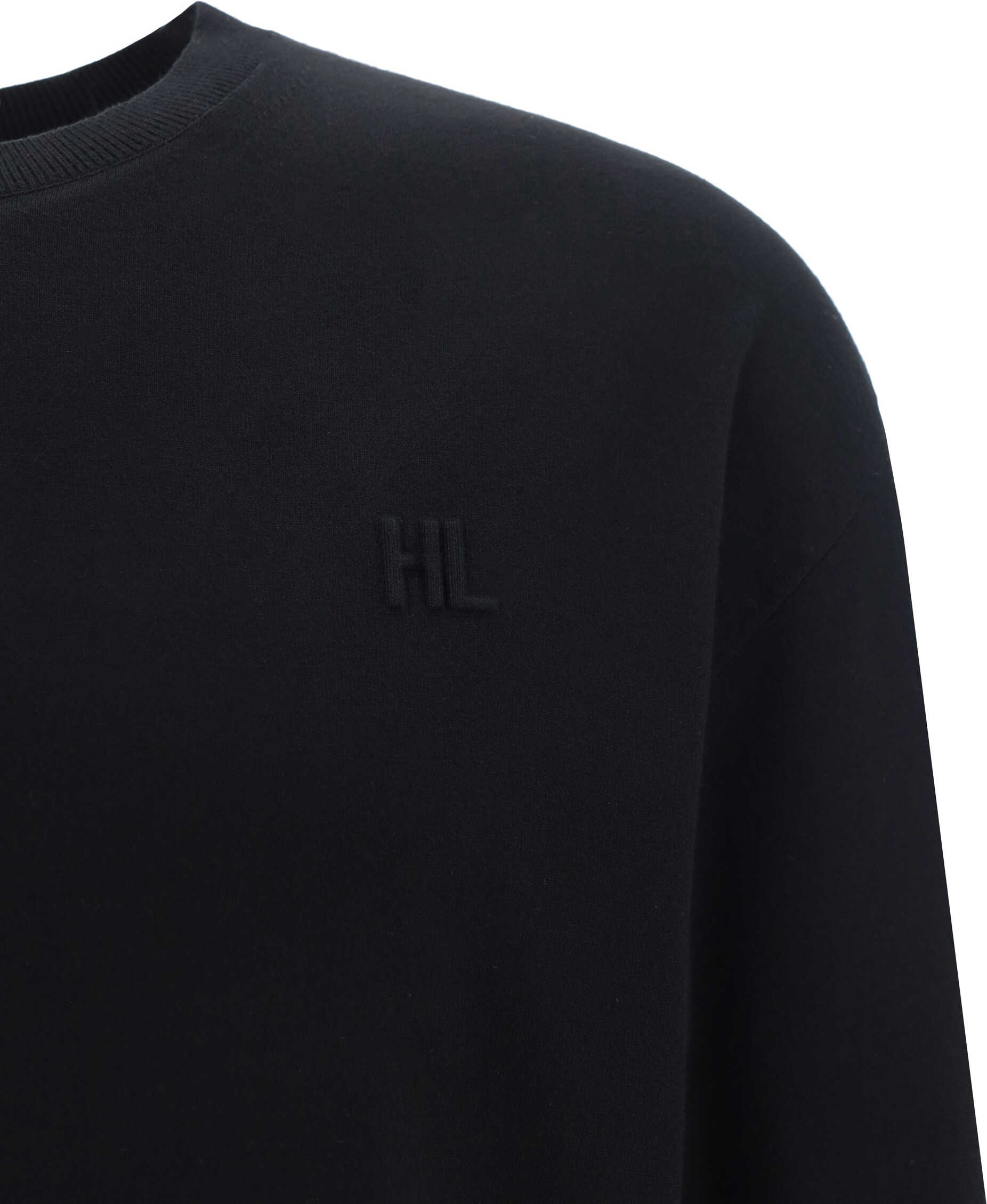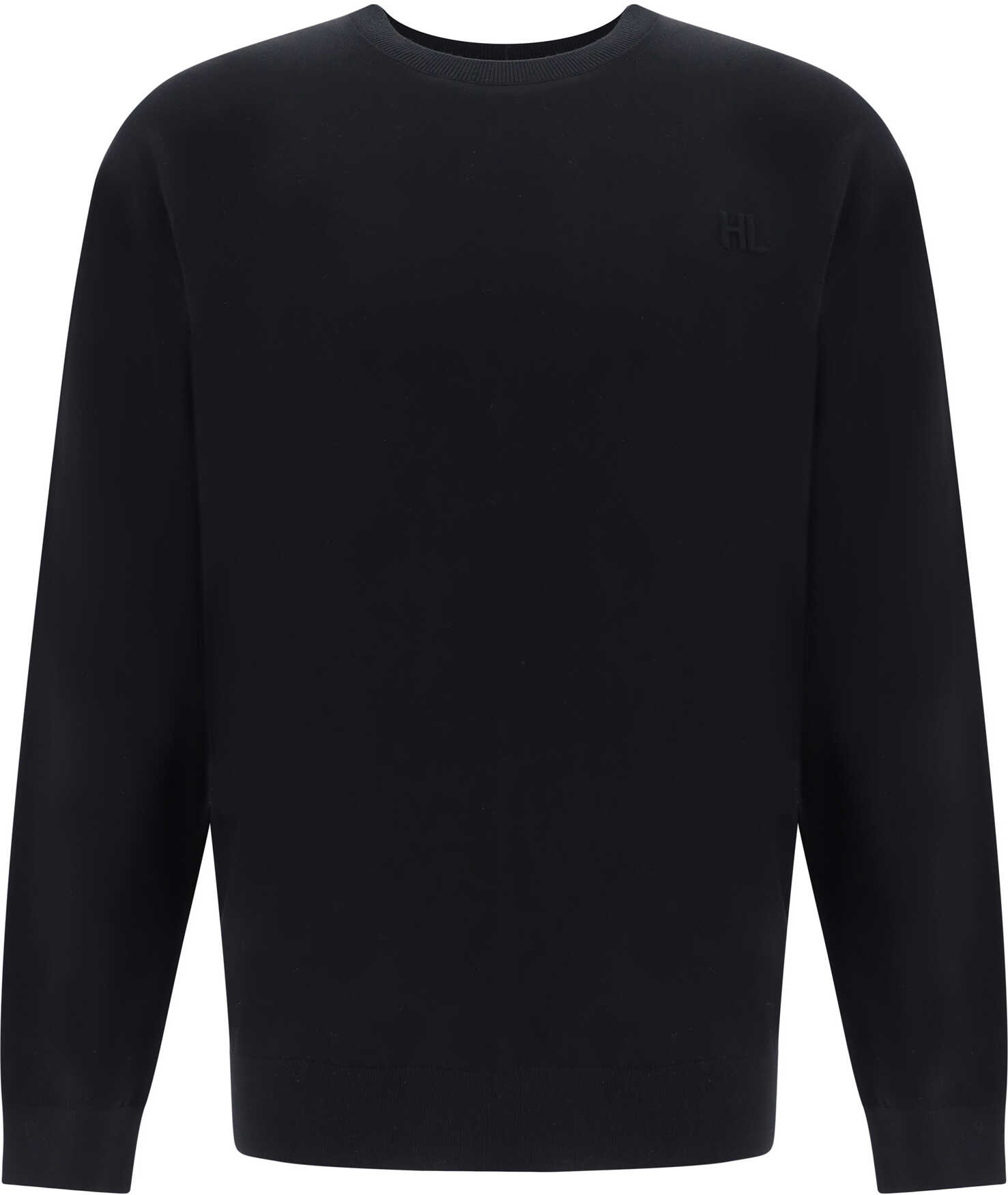 Sweater by Helmut Lang, ribbed crew neck, ribbed hem, ribbed cuffs, iconic embroidered brand logo on front, contrast stitching on sleeves.