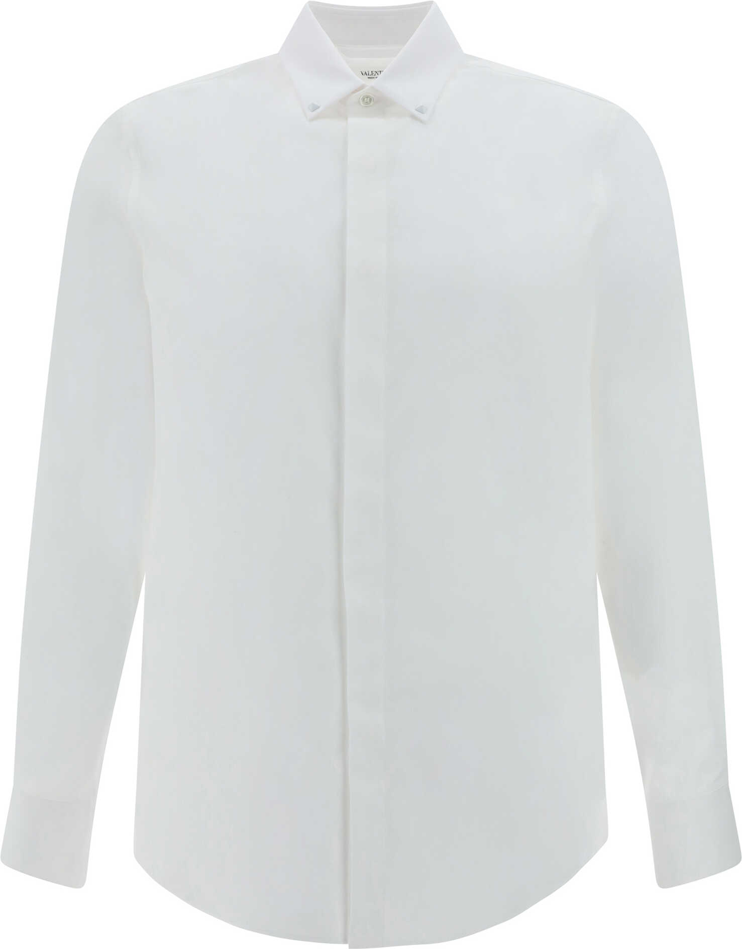 Cotton Rockstud Shirt by Valentino, classic collar with iconic branded studs applique, concealed button front closure, adjustable button cuffs, monochrome design, regular fit.