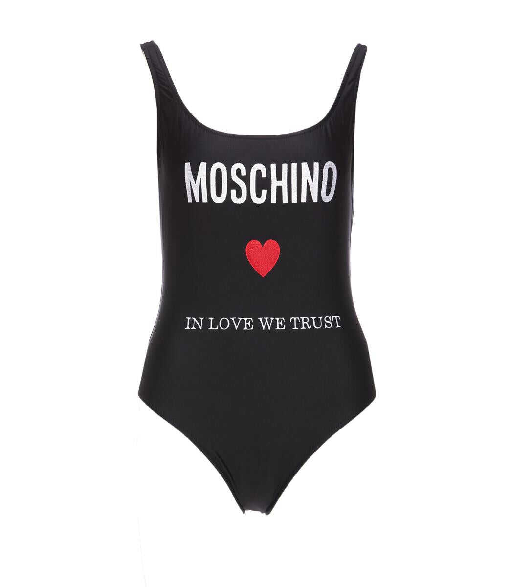 Moschino black swimwear, wide neck on the back, frontal print logo, EU SIZE (IT)