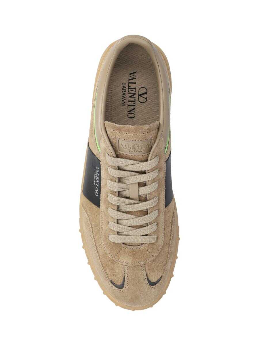 - Upper: 100% suede calfskin leather - Color: beige - Rubber sole - High heel: 2.5 cm - Other details: contrasting smooth leather side insert embellished with lettering logo - Made in Italy - Box included - Item number: 4Y2S0H77FBEYDR - Fits true to size as shown - European sizes -.