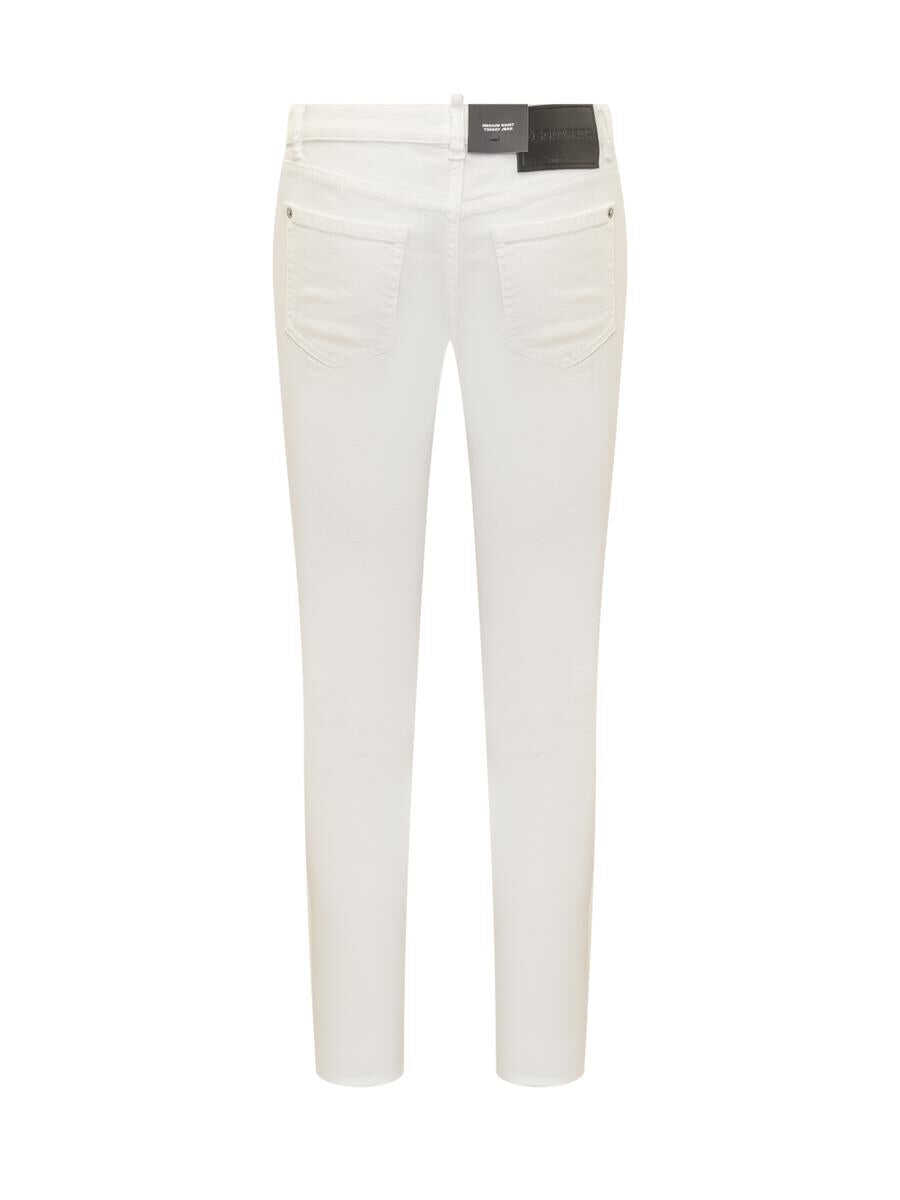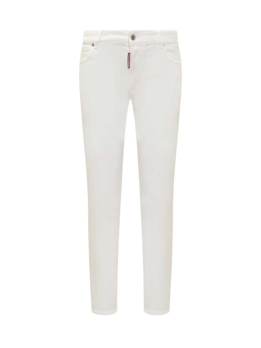 White jeans. Five pockets. Button closure. Belt loops. Logo label on back.