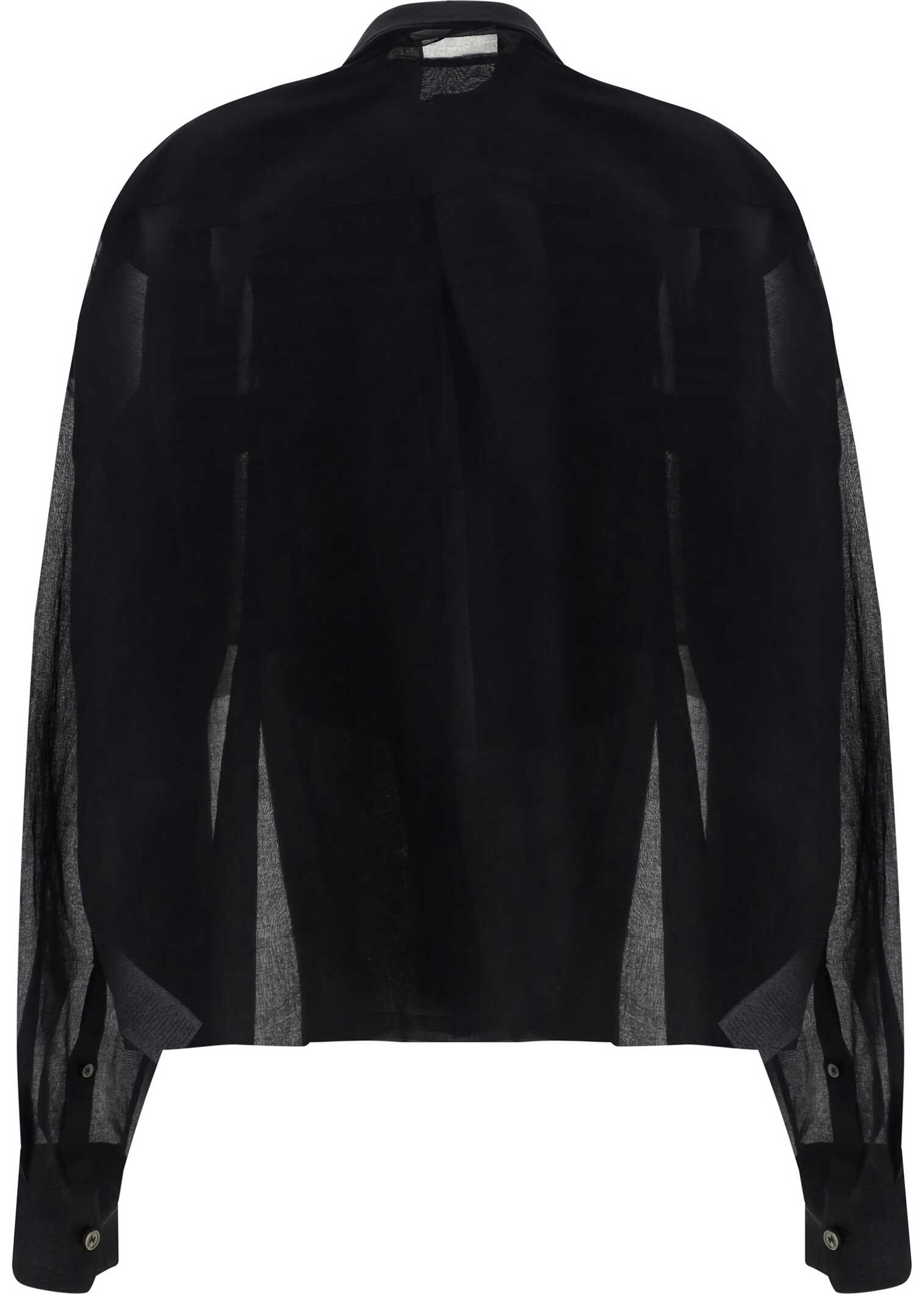 Cotton Wrap Shirt by Off-White, double-breasted front closure using concealed buttons, soft ruche-effect crew neck, semi-transparent monochrome design, regular fit.