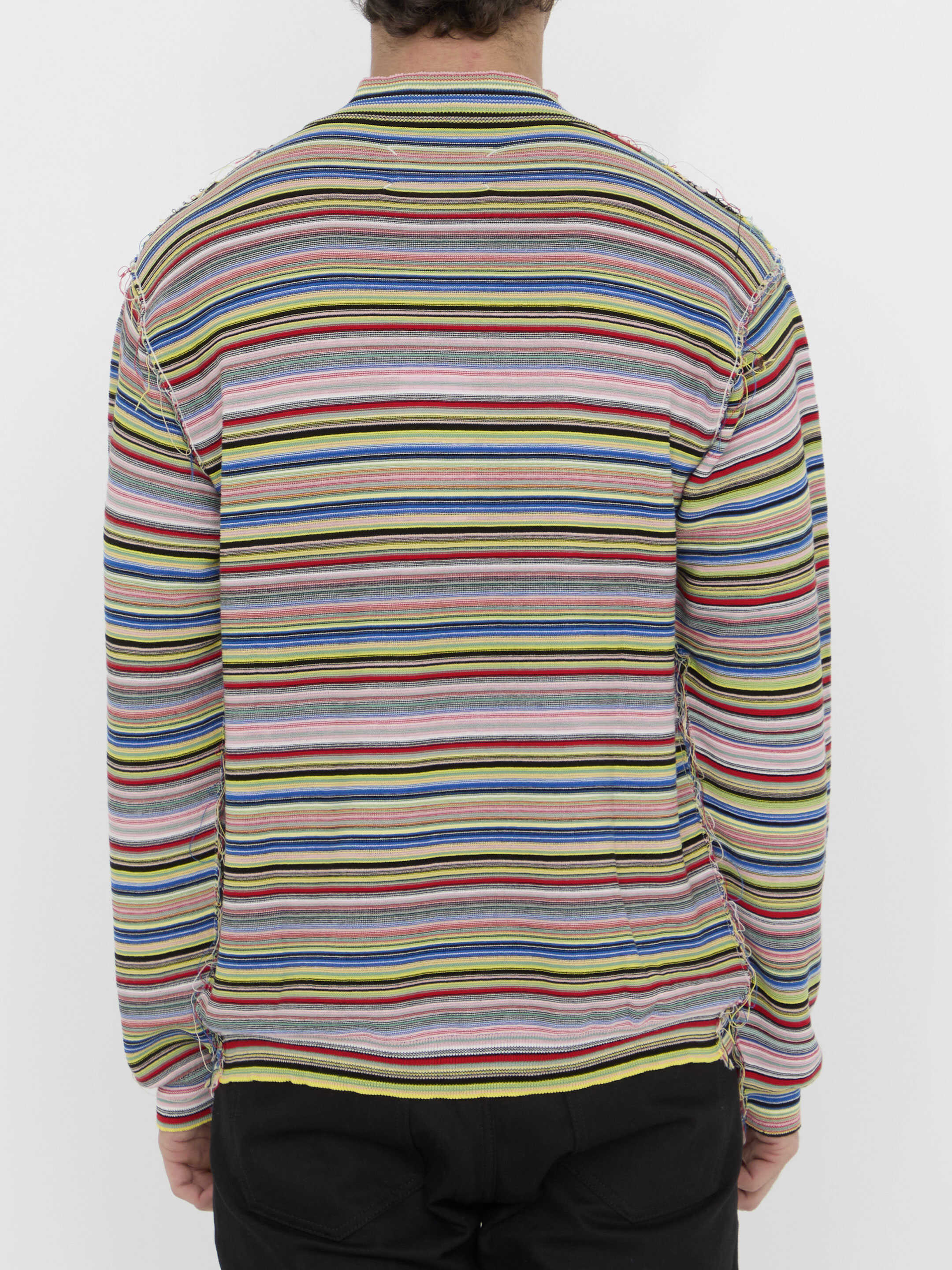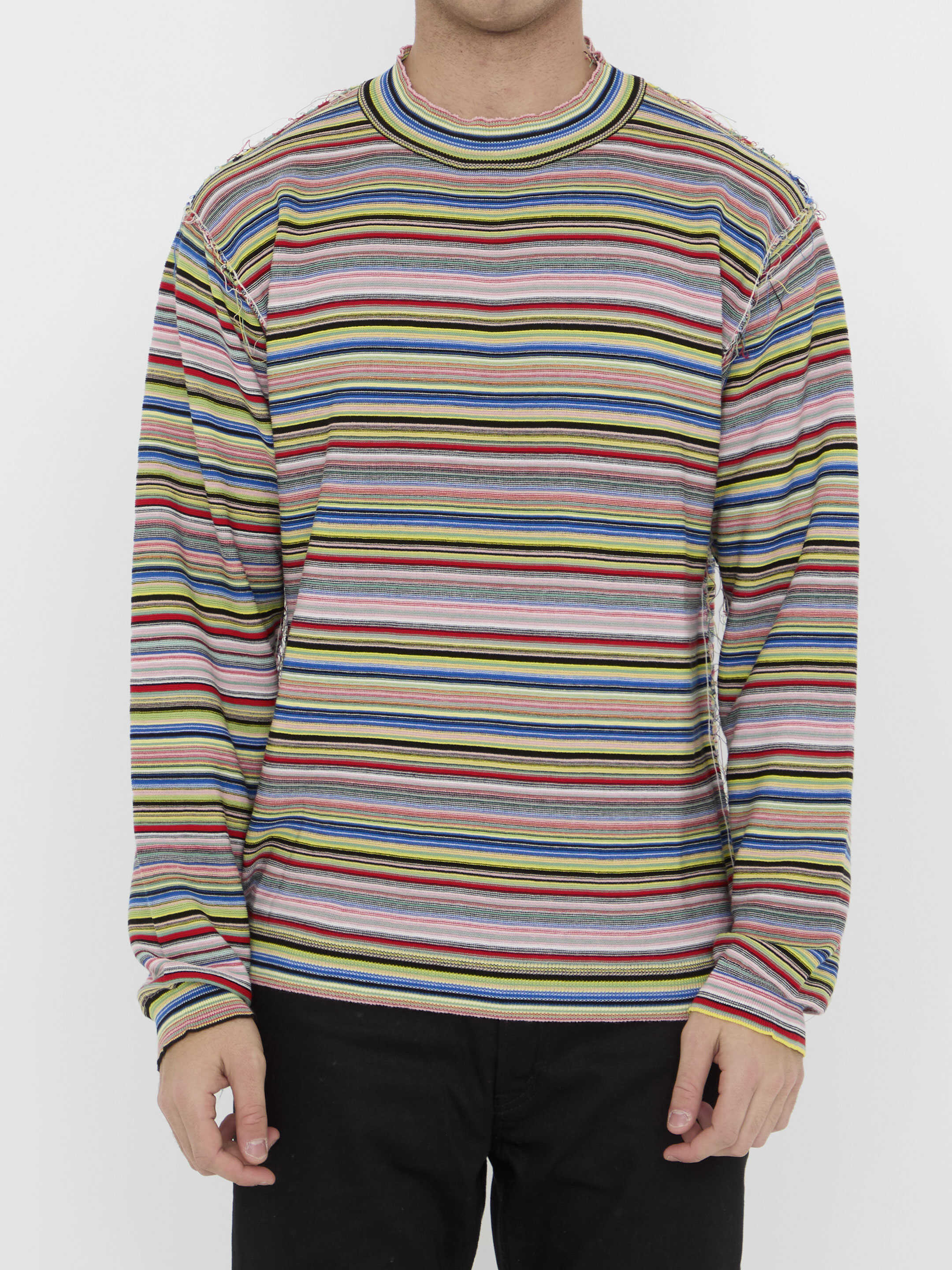 Long-sleeved crewneck top in multicolor striped cotton knit with destroyed details. Four Stitches detail at the back. Ribbed neck, cuffs and hem. Regular fit.