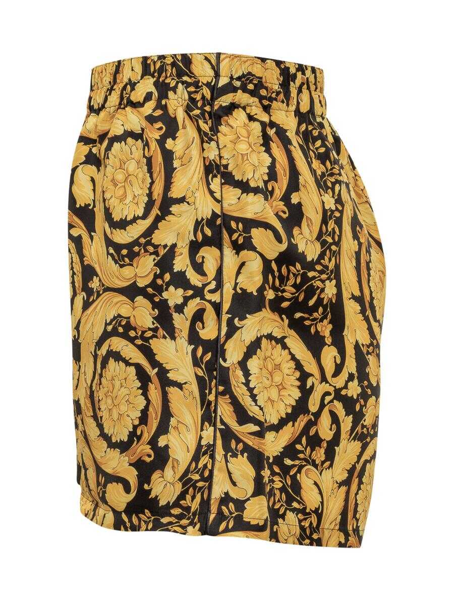 Pajama shorts. Button closure. Elasticized waistband. All-over baroque pattern.