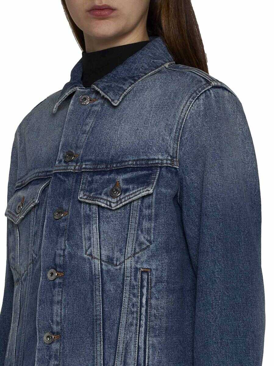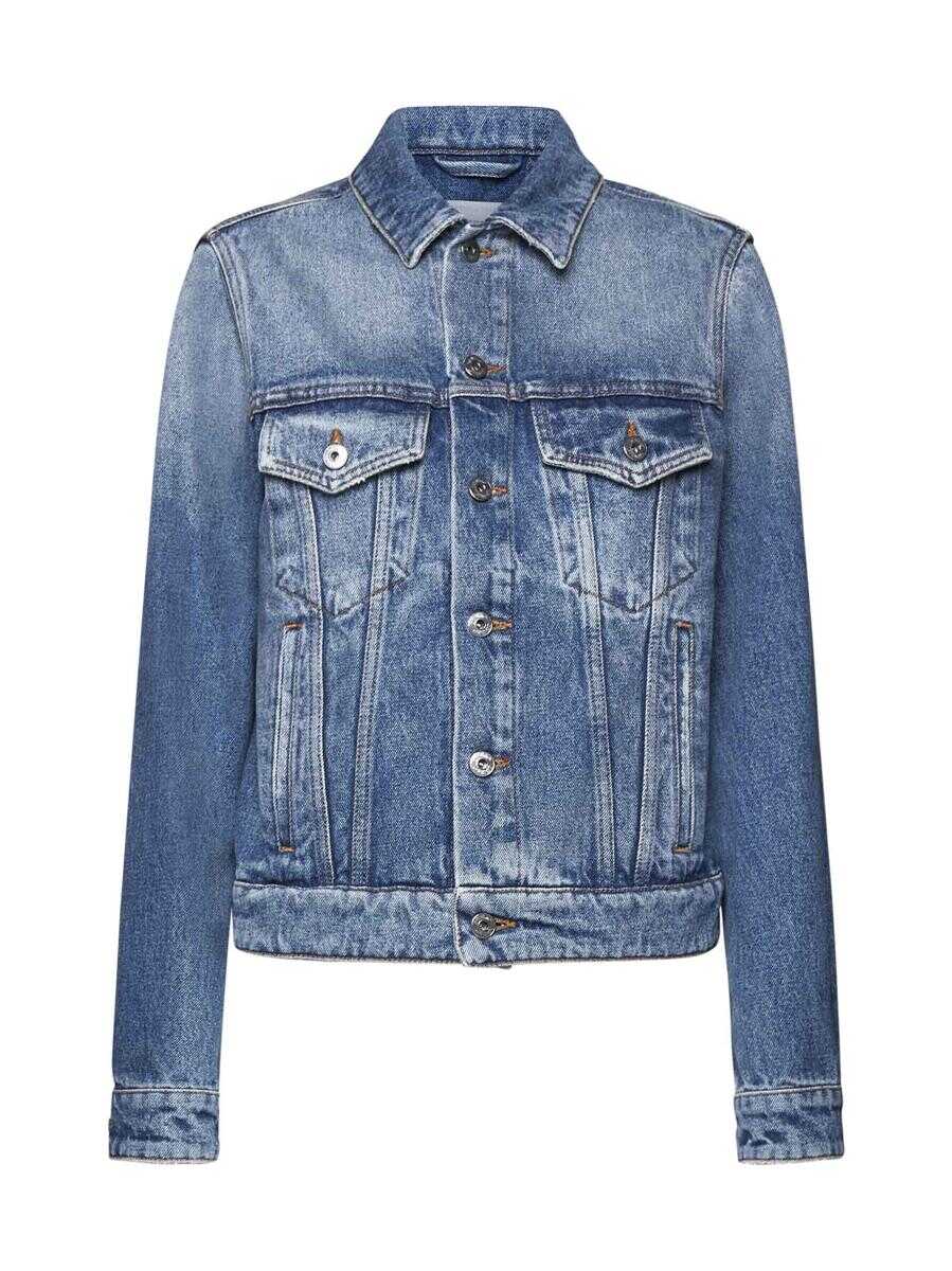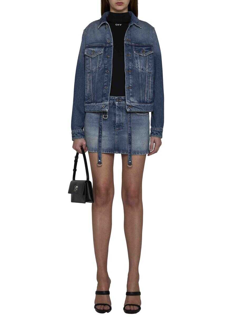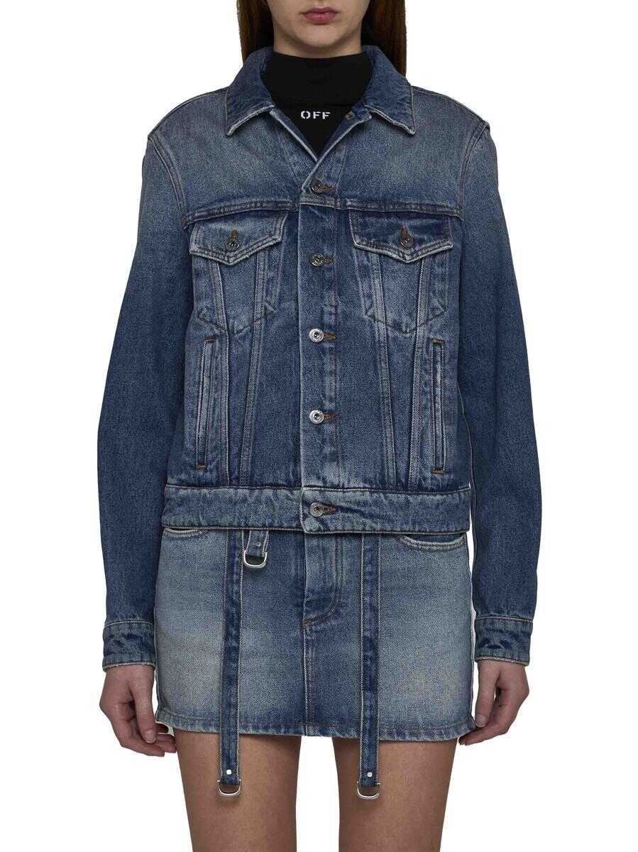 Off-White’s vintage blue denim regular-fit jacket featuring a pointed collar, front and cuff buttoning, buttoned flap pockets, side pockets, adjustable straps at the sides and logo label on the back.