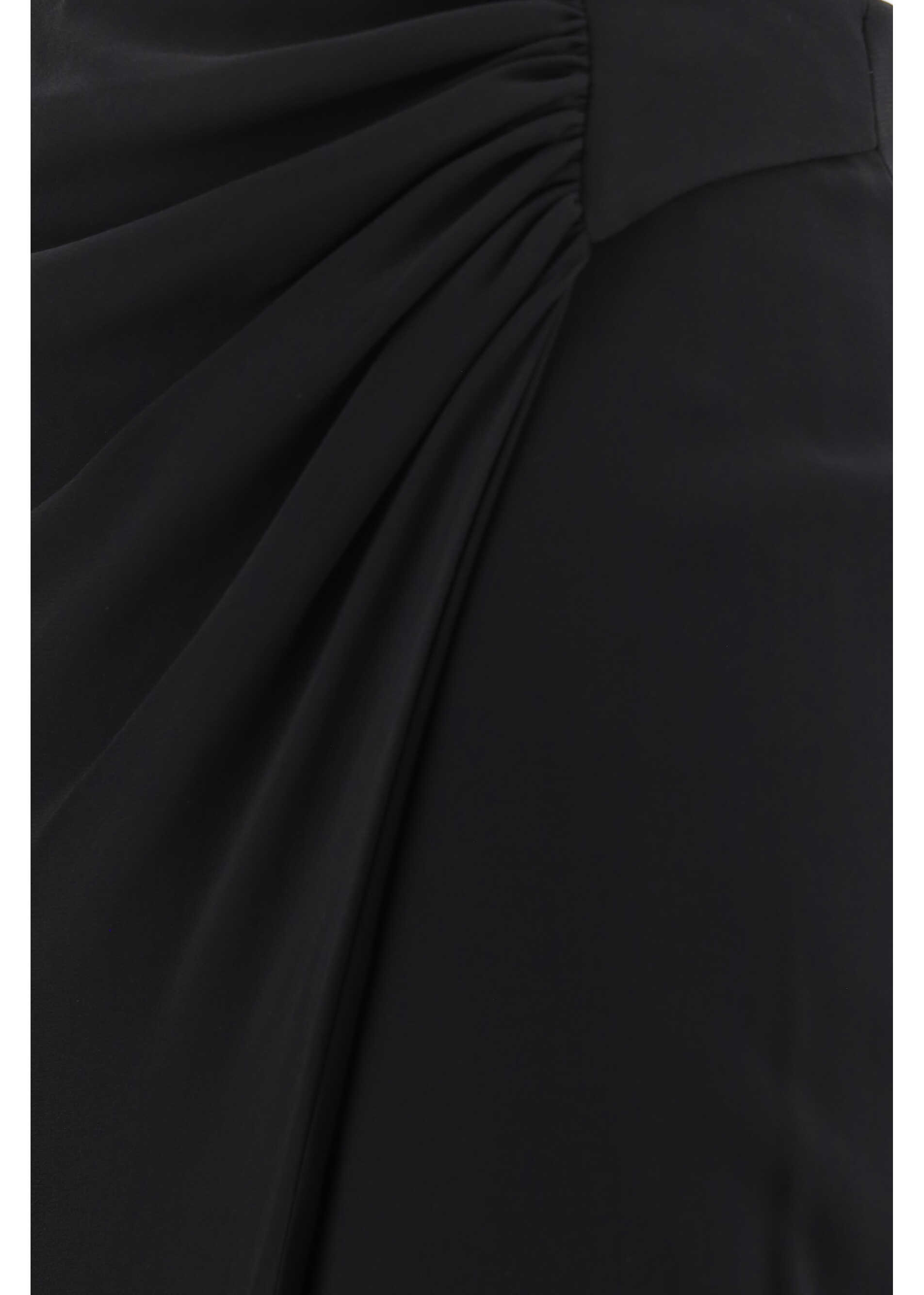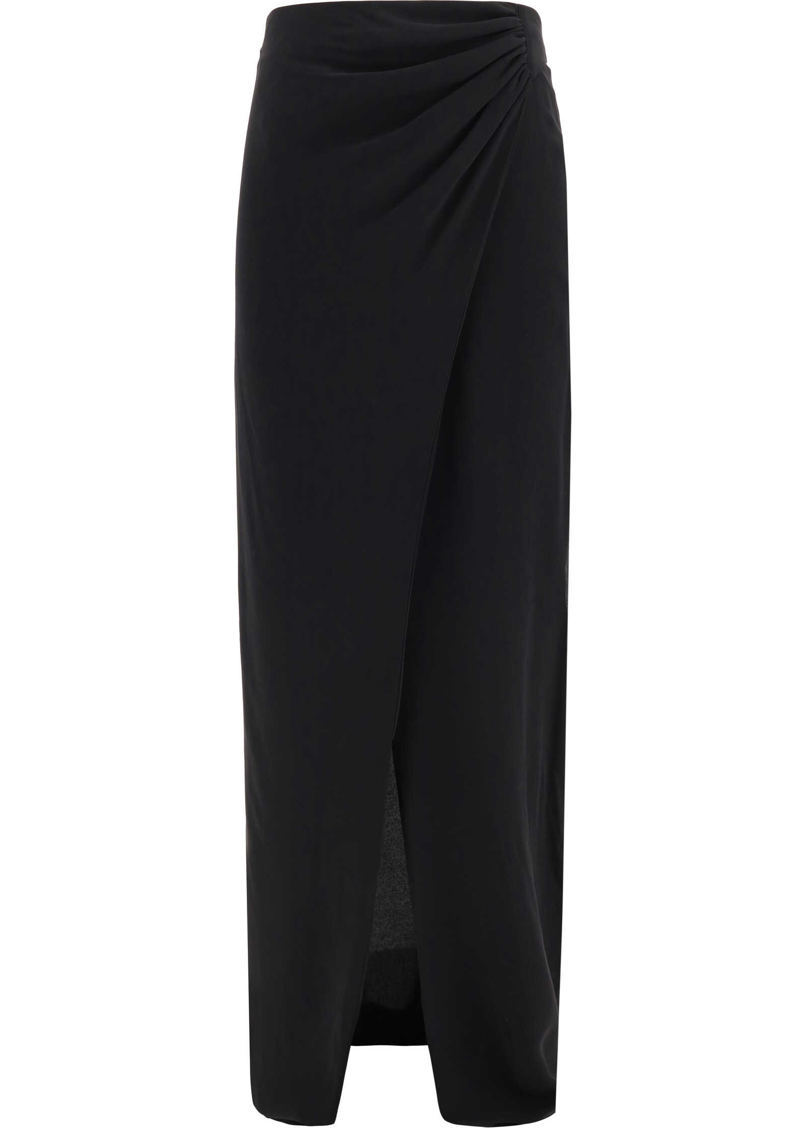 Silk Skirt by The Andamane, wrap design, back panel zipper closure, ruching effect detail on front panel, monochrome pattern, regular fit.