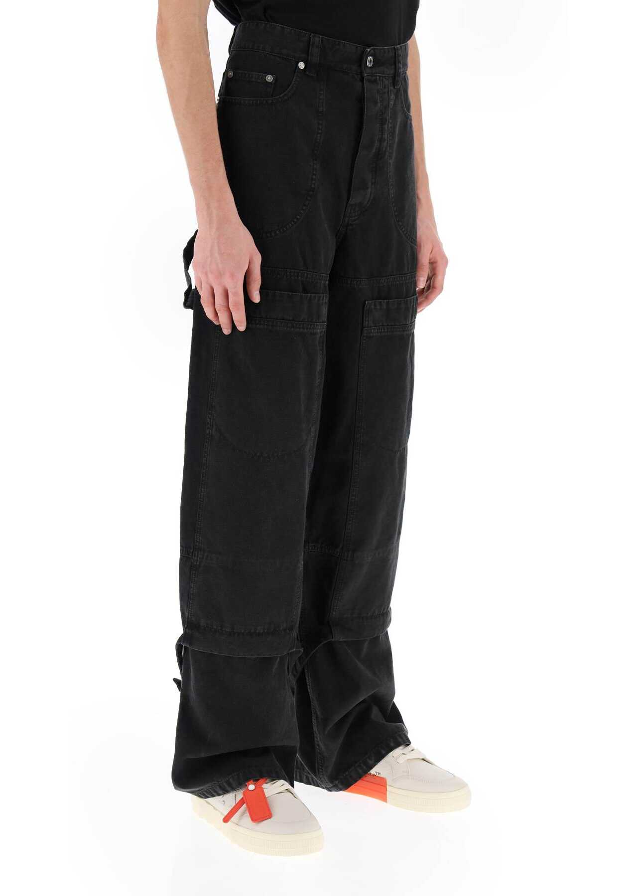 Off-White cargo pants crafted in in garment-dyed cotton canvas, characterized by utility pockets, hammer-loops and adjustable straps on the legs. Five-pocket design with a wide relaxed cut, featuring button-fly closure, belt loops and leather Arrow jacron on the back of the waist. The model is 187 cm tall and wears size 31.