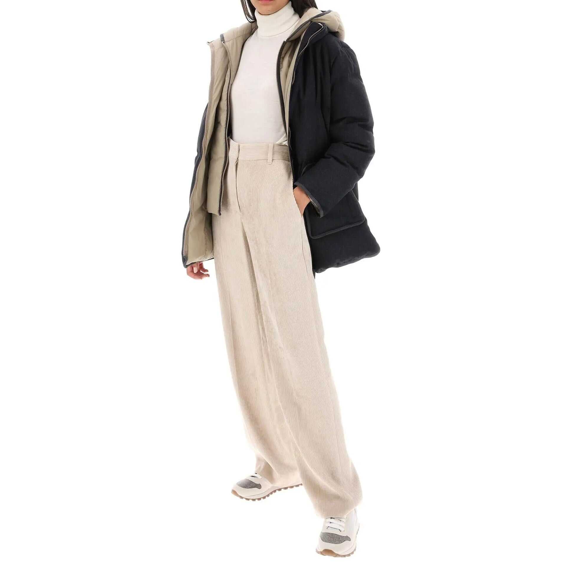 - Composition: 100% Virgin wool - Long sleeves - Zip fastening - Two patch pockets - Zipped side slits - Padding in 90/10 goose down and feathers - The model is 177 cm tall and wears size IT 38 - Two-way zipper closure - Removable hooded nylon insert - Made in Italy - Gender: WOMEN - MPN MT2262704_C005 - Barcode: 232 MT2262704 C00506 - Code: JKT BC 2 DJ FW00 08299
