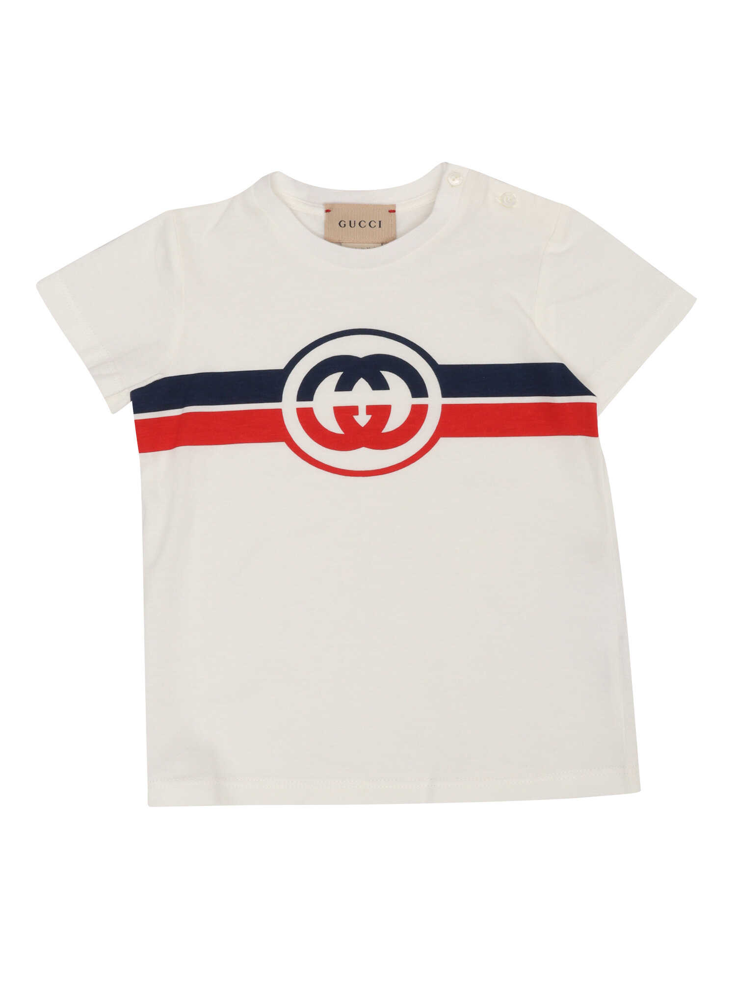 Short-sleeved GG t-shirt made by cotton fabric with a contrasting logo on the front.