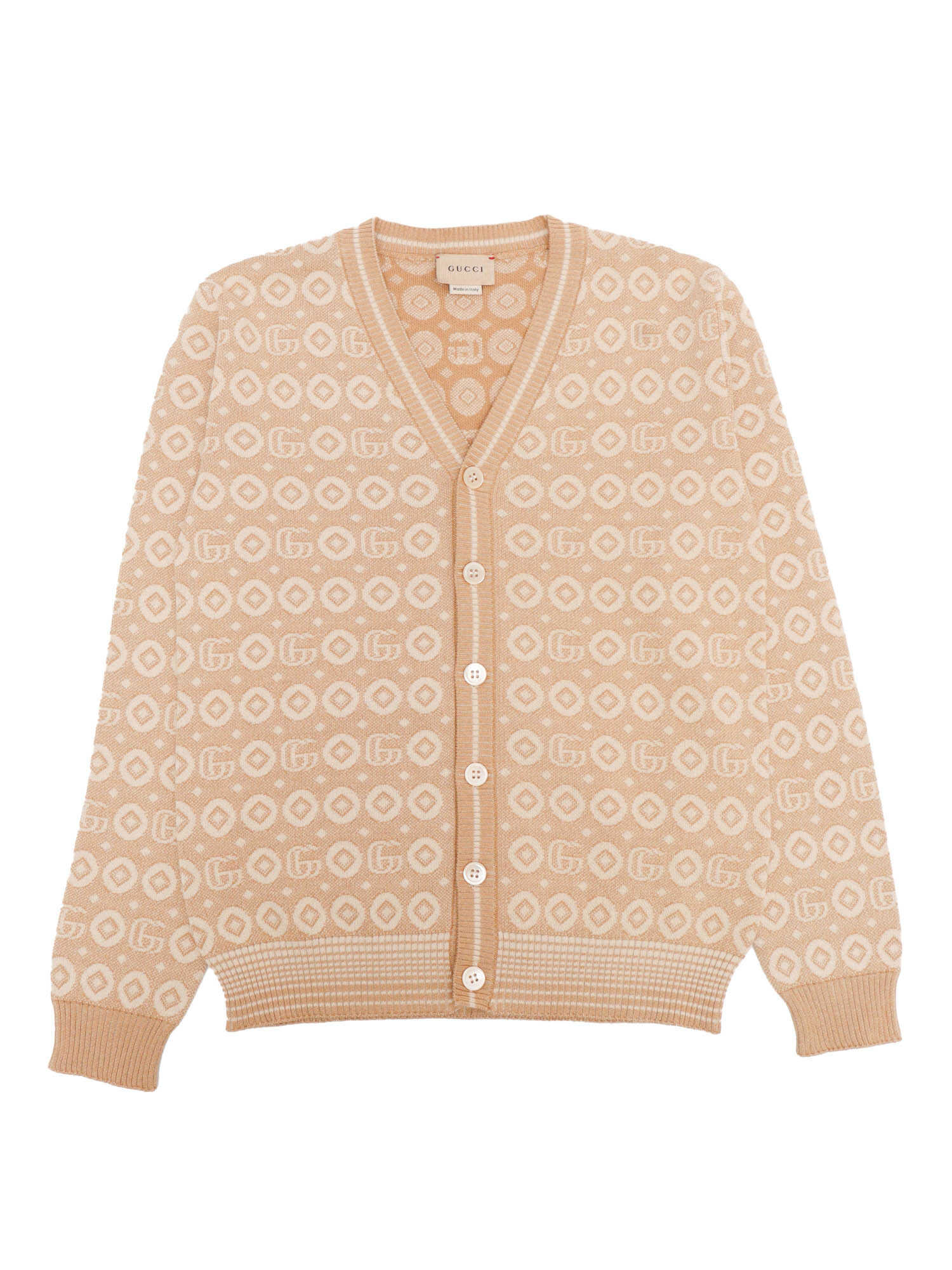 Jacquard cotton cardigan, GG motif, ribbed edges, V-neck