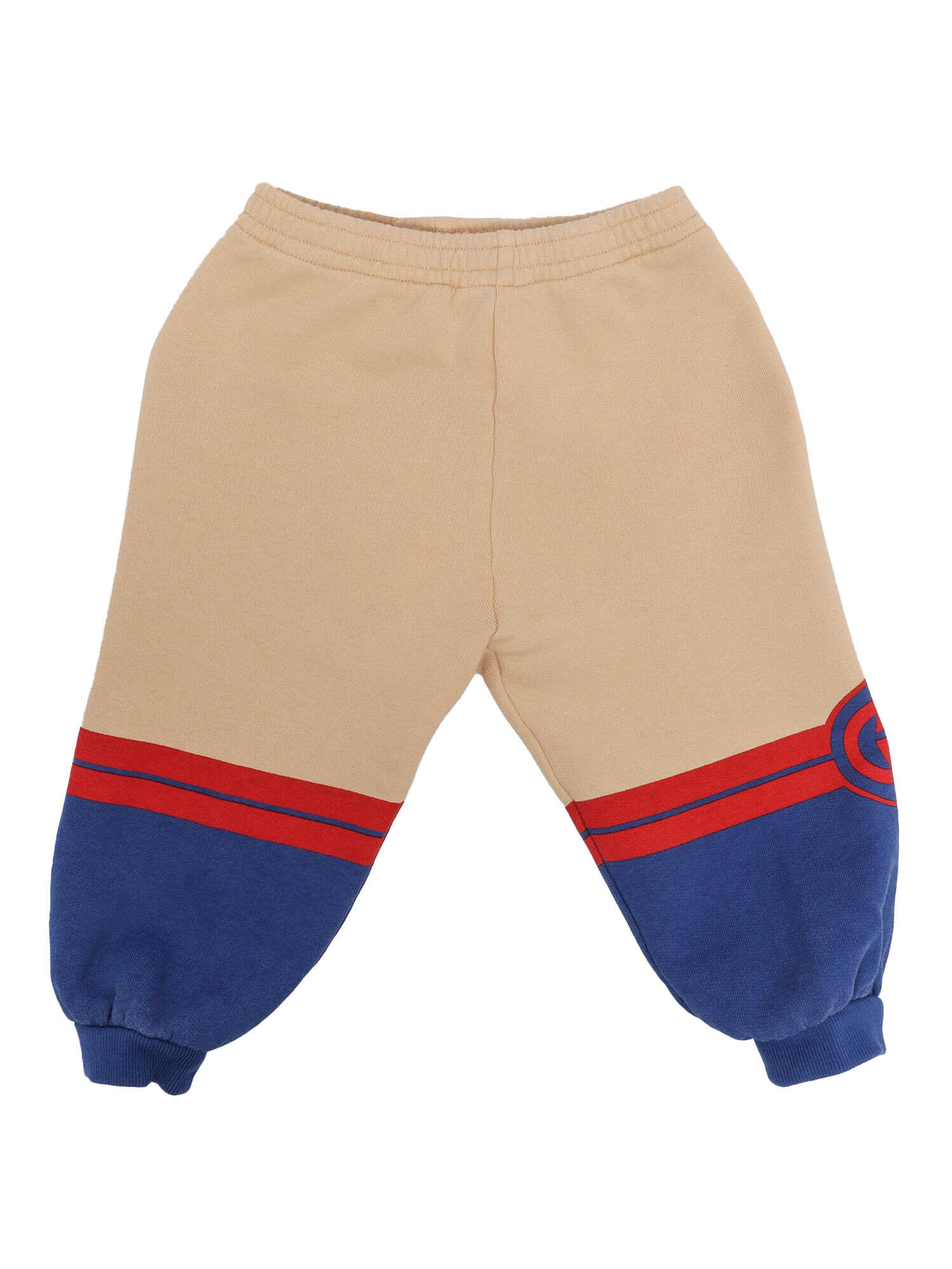 GG cotton joggers with elastic waist closure. Contrasting logo on the outside of the leg.