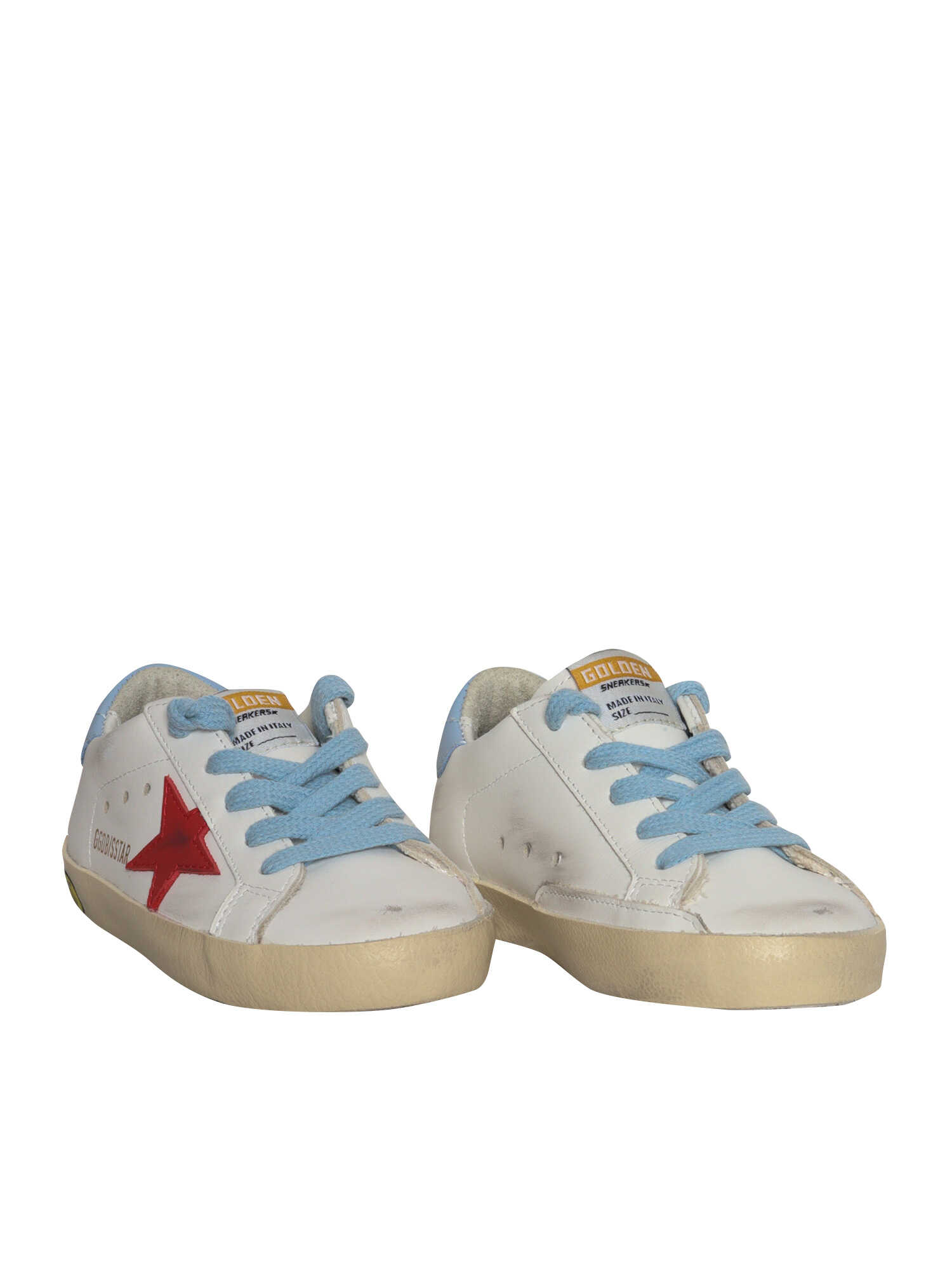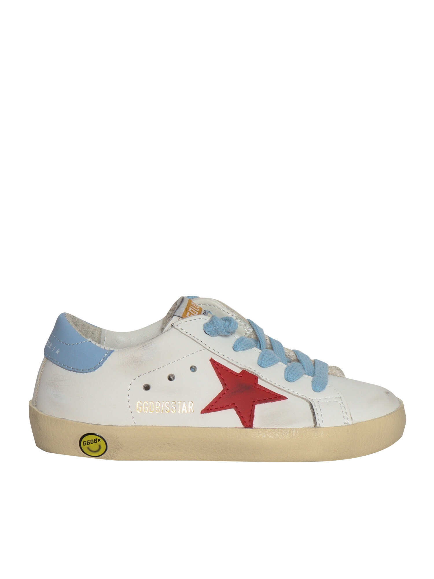 Leather sneakers, contrasting details, vintage effect, logo lettering print, smile detail on the sole