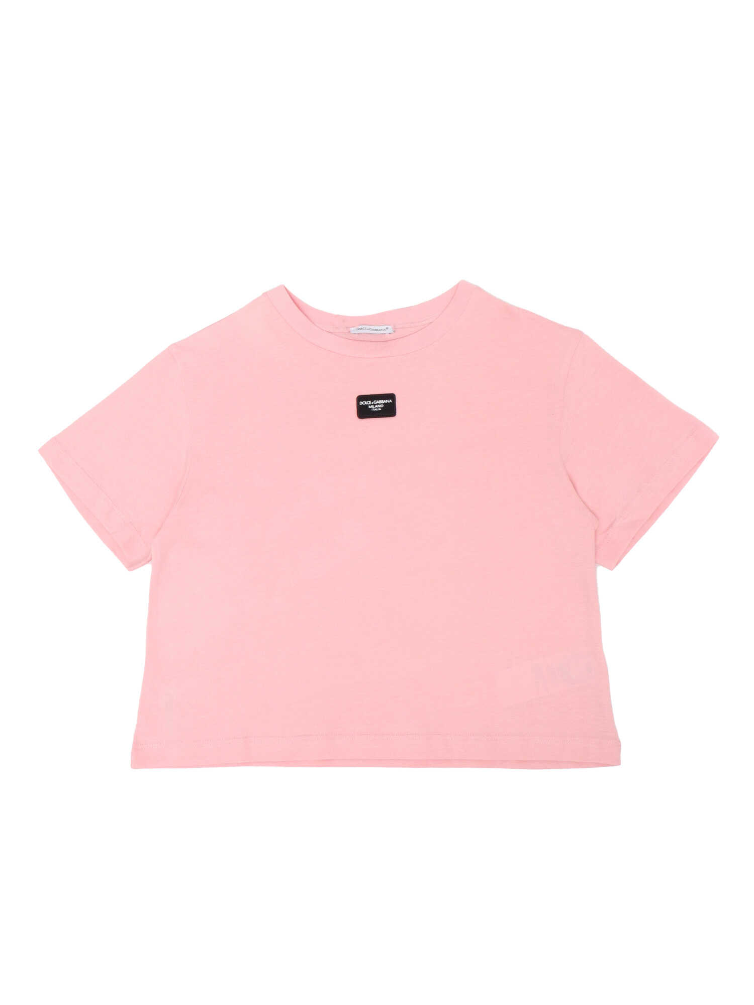 D&G 100% cotton crop-top t-shirt, round neckline. Contrasting front plate with D&G brand.