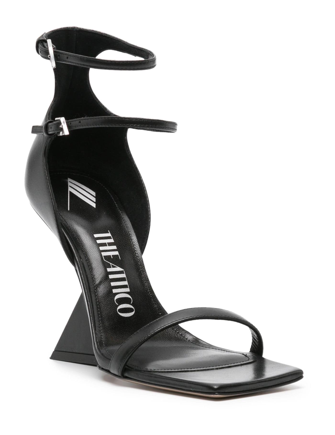 Underpinned by a futuristic spirit, the Cheope mules from The Attico are characterised by their sculpted heel with a pyramidal wedge. They're crafted from leather in timeless black and feature two buckled straps that reforce the ankle support and add a rebel touch.