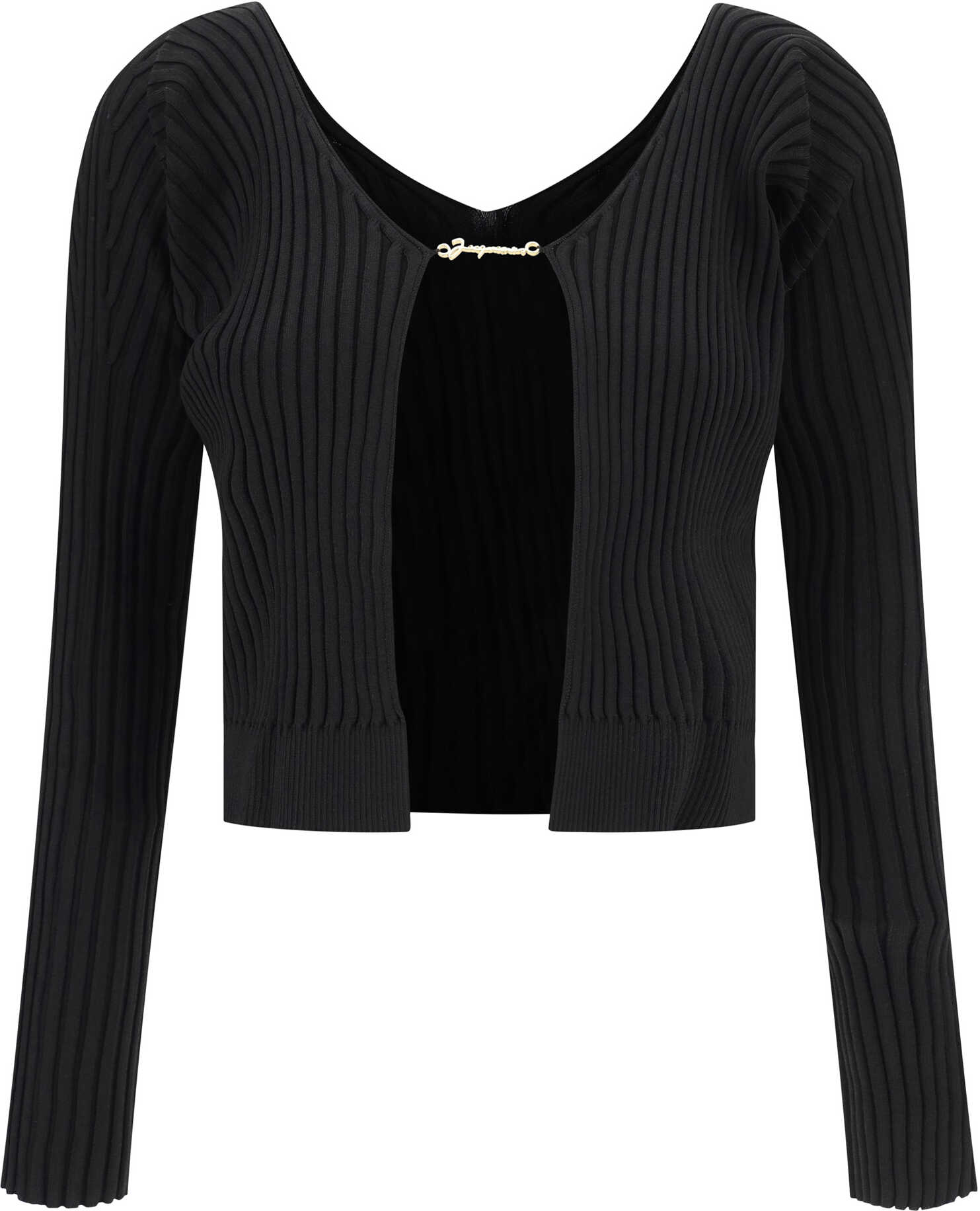 La Maille Pralu Cardigan by Jacquemus, monochrome pattern, all-over ribbed design, front closure via iconic brand signature plaque, close-fitting.