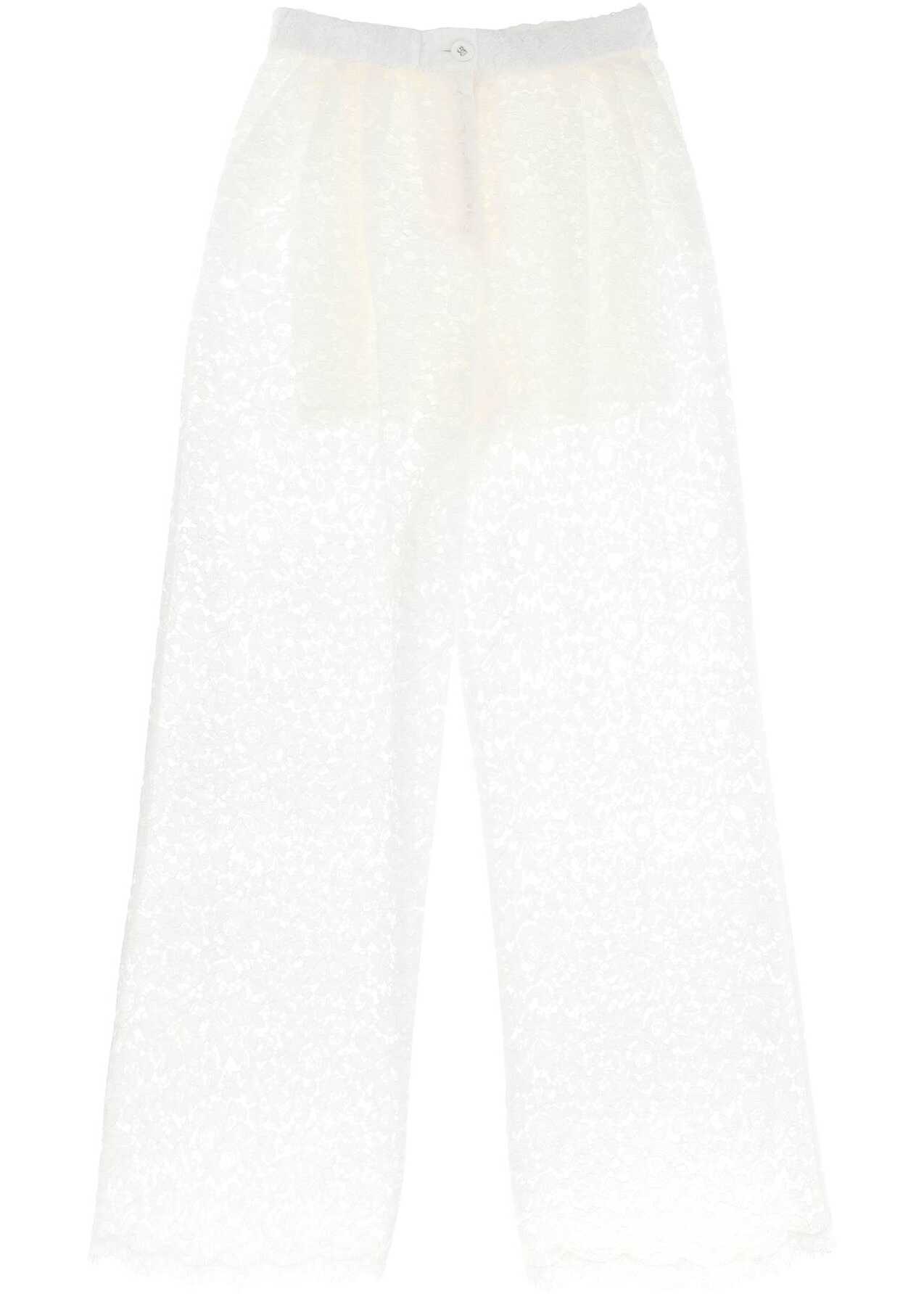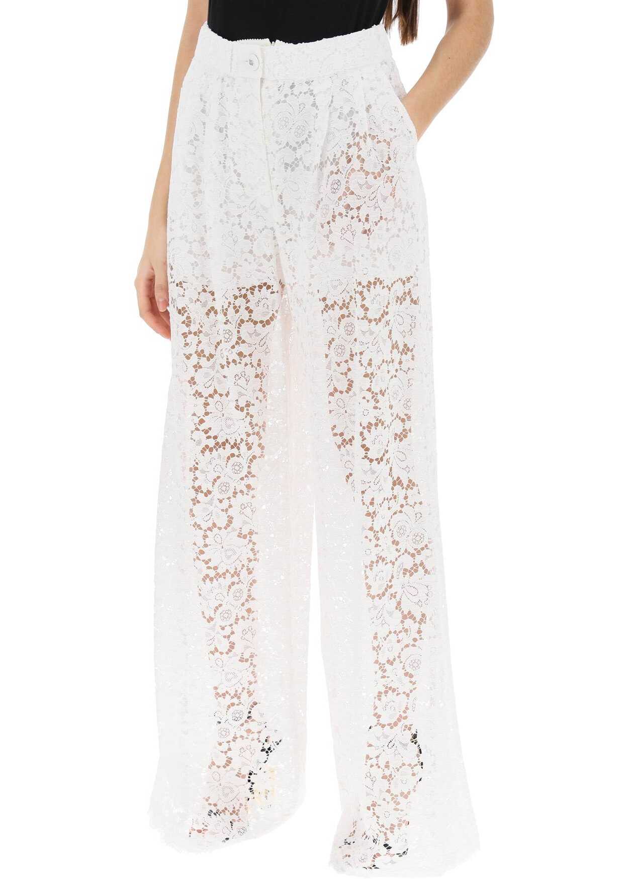 Dolce&Gabbana pajama-inspired pants crafted in viscose and cotton-blend cordonnet lace, characterized by a wide relaxed cut enhanced by front pleats. They feature zipper-fly and logoed canneté-button closure, side slash pockets and scalloped hem. The model is 177 cm tall and wears size IT 42.