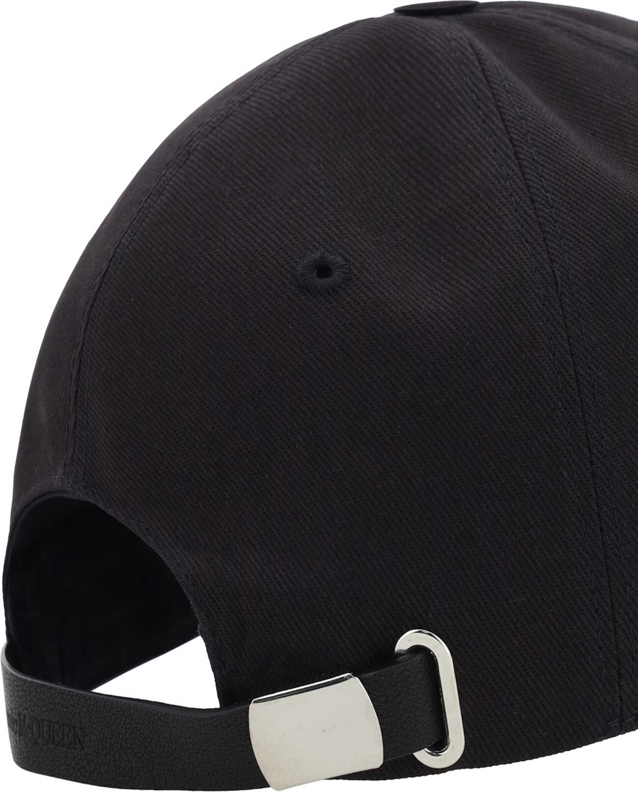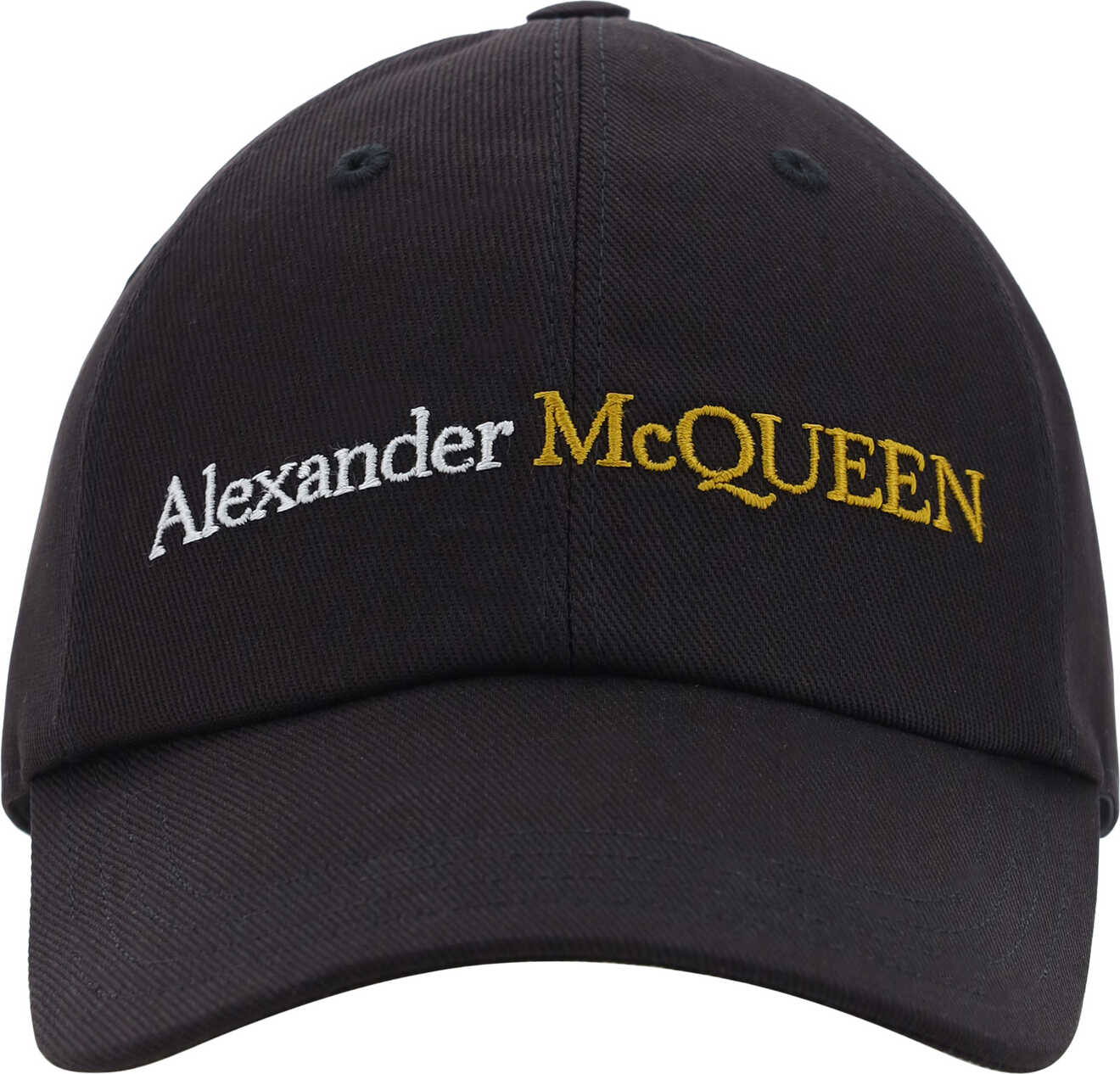 Cotton Baseball Hat by Alexander McQueen, adjustable back closure, iconic brand signature embroidered in contrast on front.
