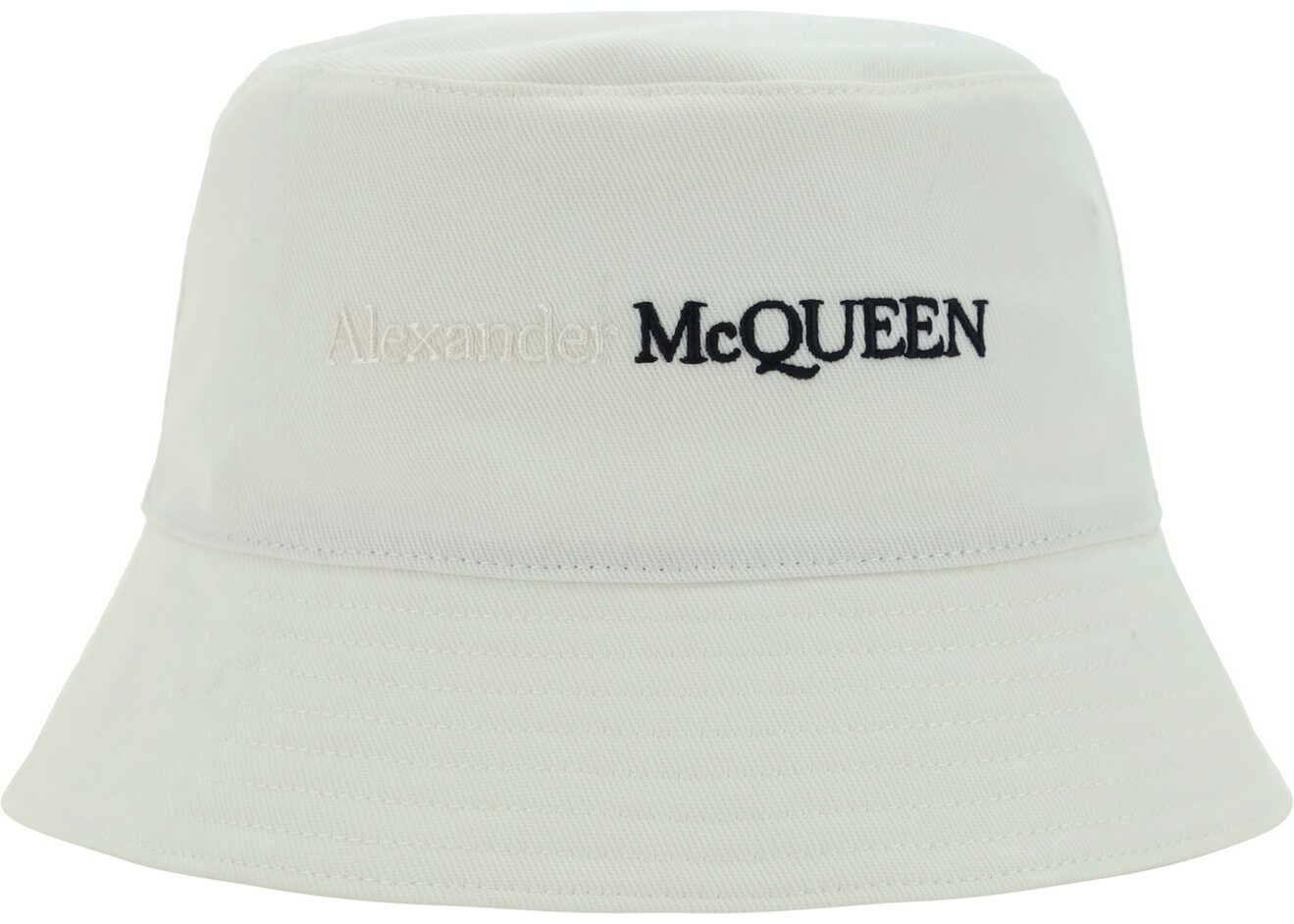 Cotton Bucket Hat by Alexander McQueen, iconic brand signature embroidered in contrast on the front.