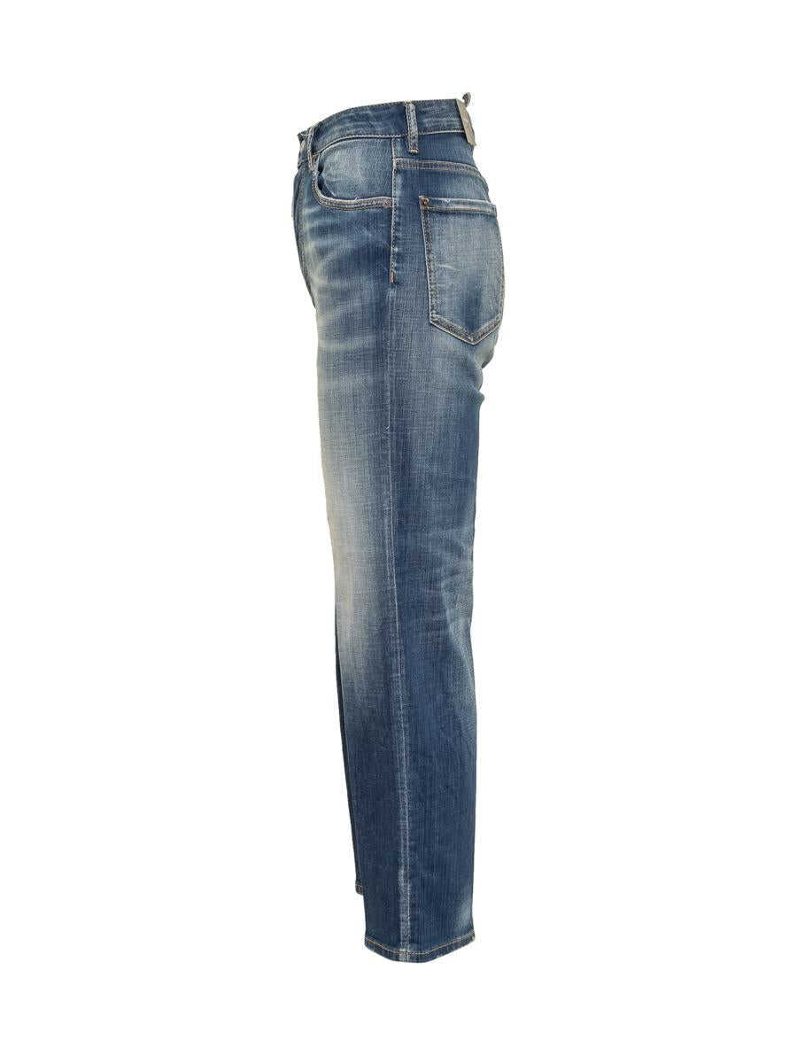 Long jeans in stretch denim. Button closure. Belt loops. Five pockets. Embroidered logo on the back. Worn effect. Skinny fit. Used to worn denim wash.
