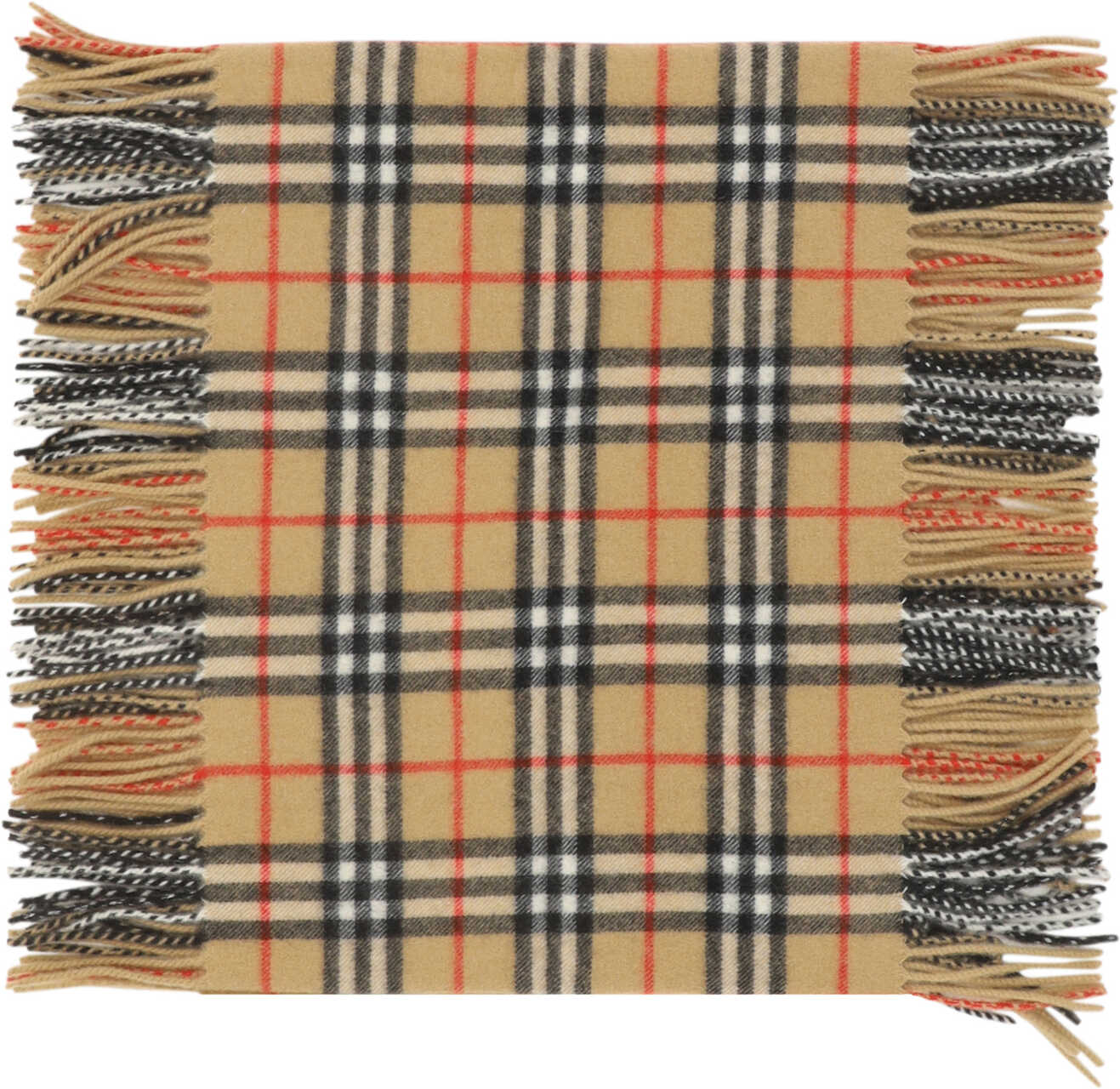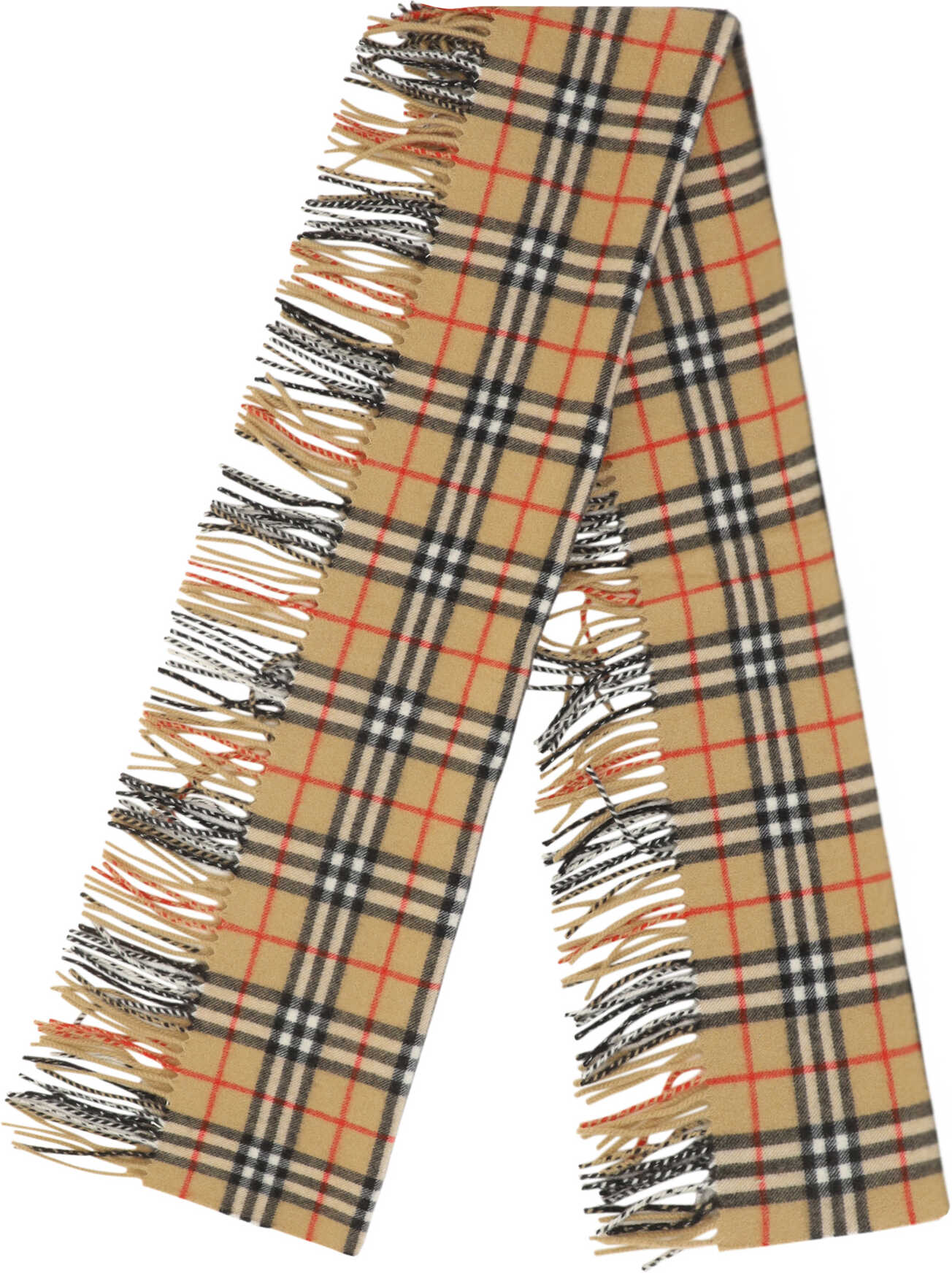 Wool Scarf by Burberry, iconic Check pattern Archived by the brand, frayed hems.