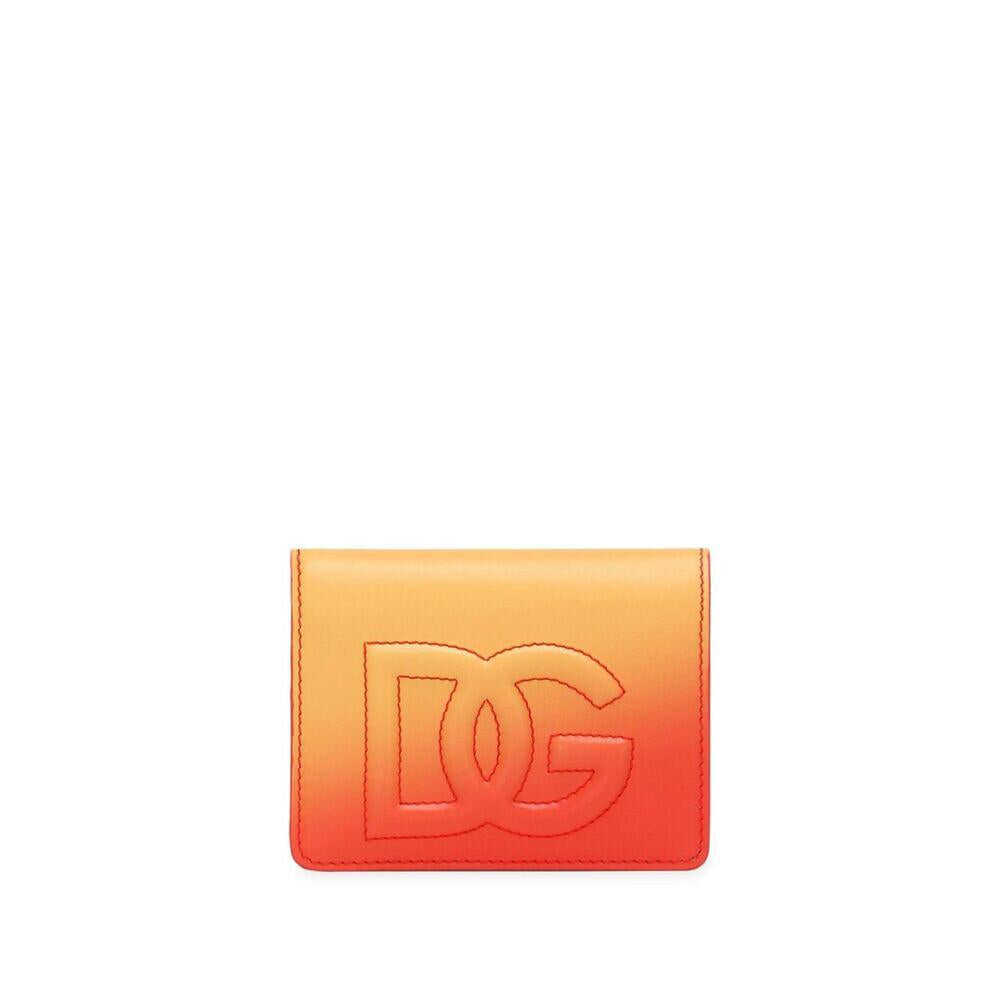 Burnt orange/sunset yellow calf leather ombré effect embroidered logo to the front folded design concealed press-stud fastening internal card slots internal zip-fastening pocket