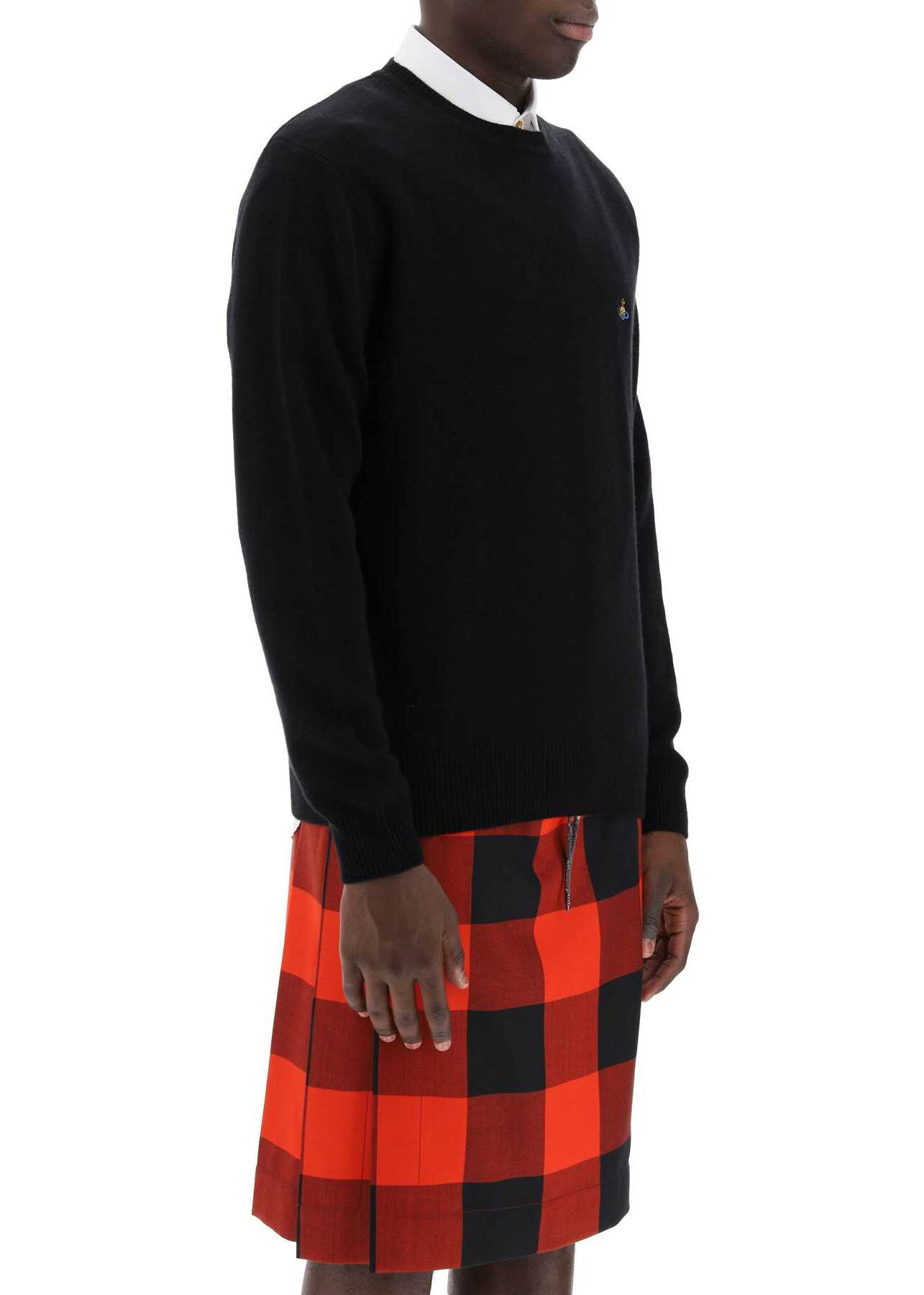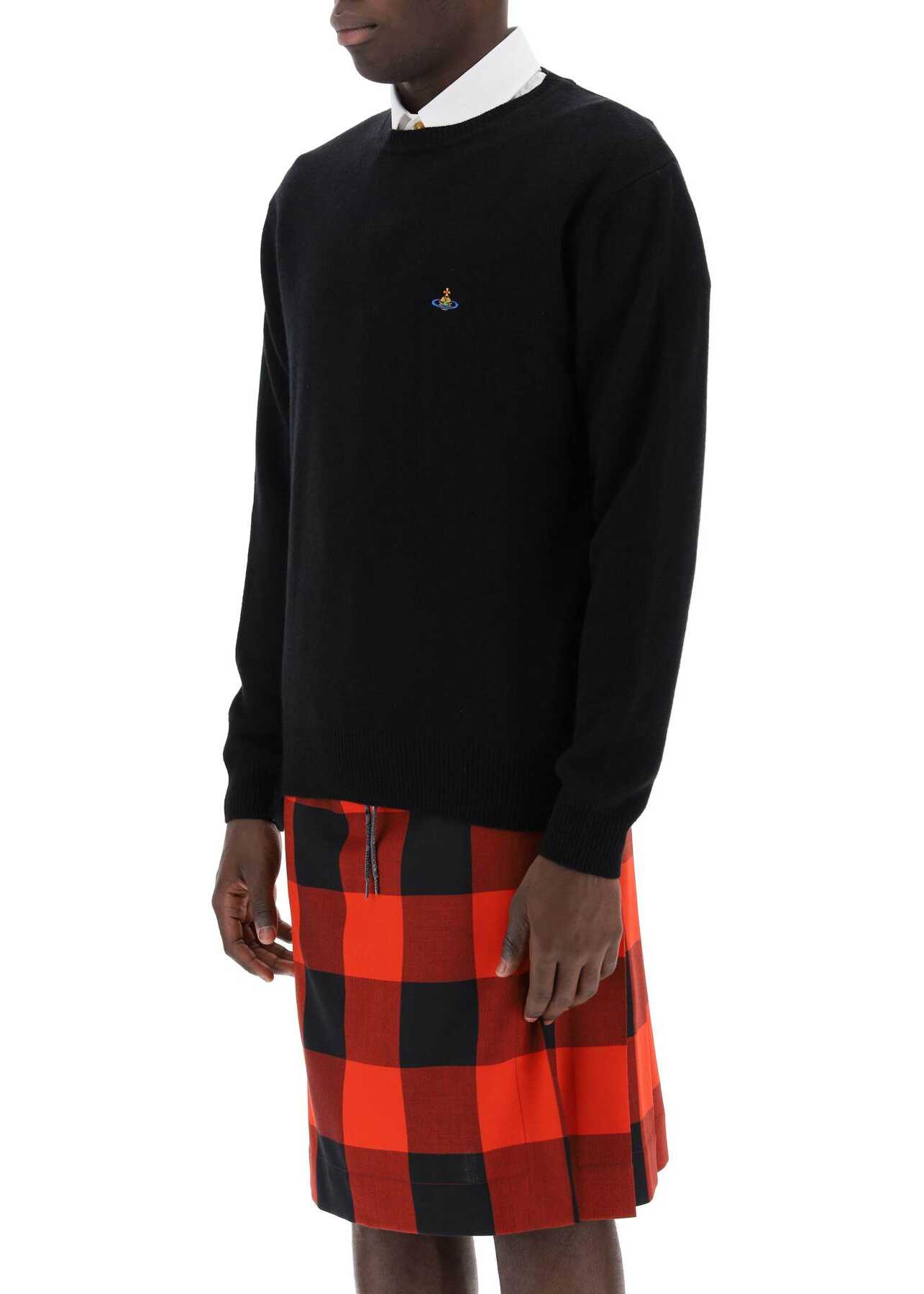 This Vivienne Westwood crew-neck sweater is knitted from a soft merino wool and cashmere blend to a comfortable silhouette with slightly dropped shoulders. Finished with ribbed trims, it is embroidered with a multicoloured Orb logo at the chest. The model is 187 cm tall and wears a size L.