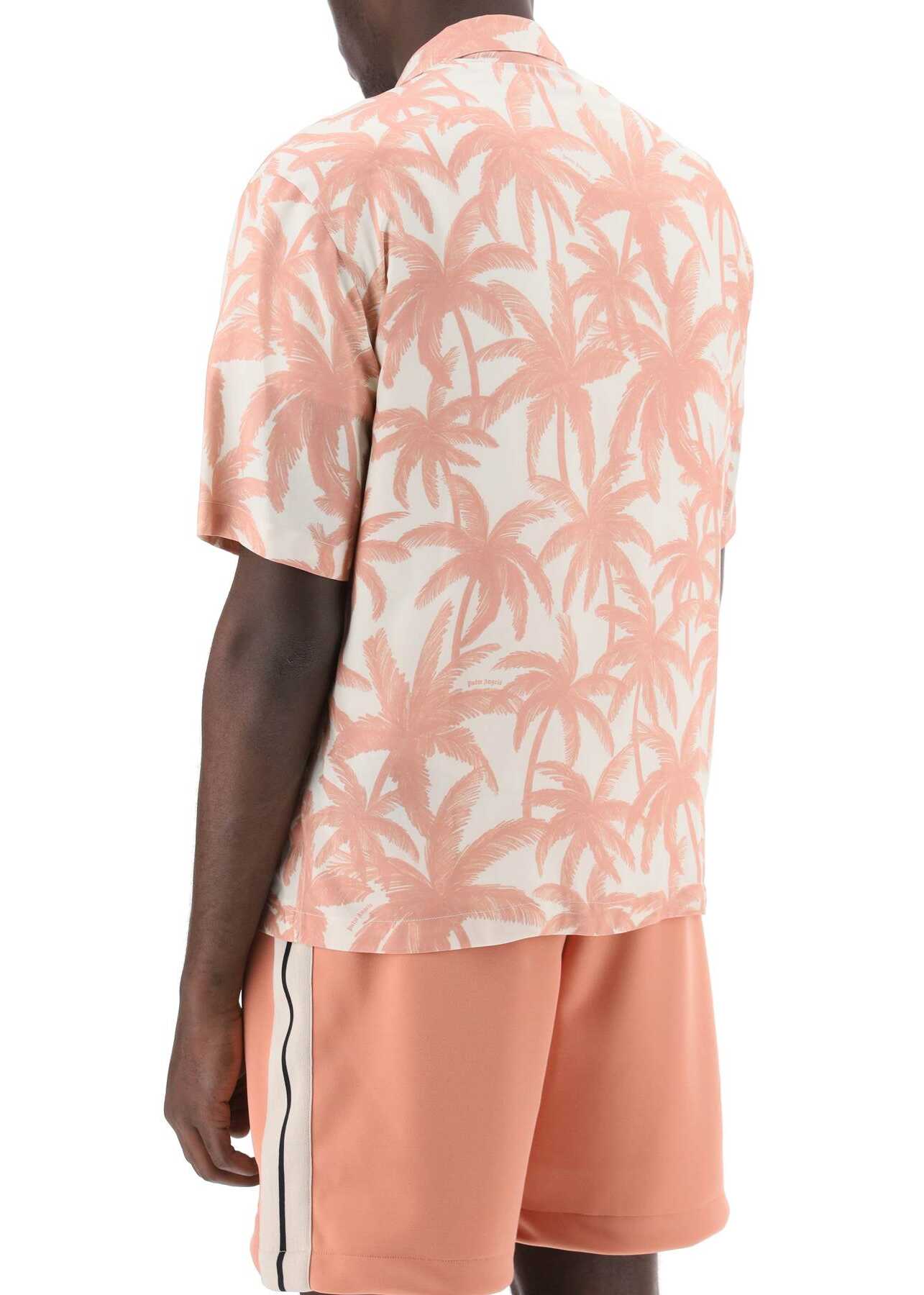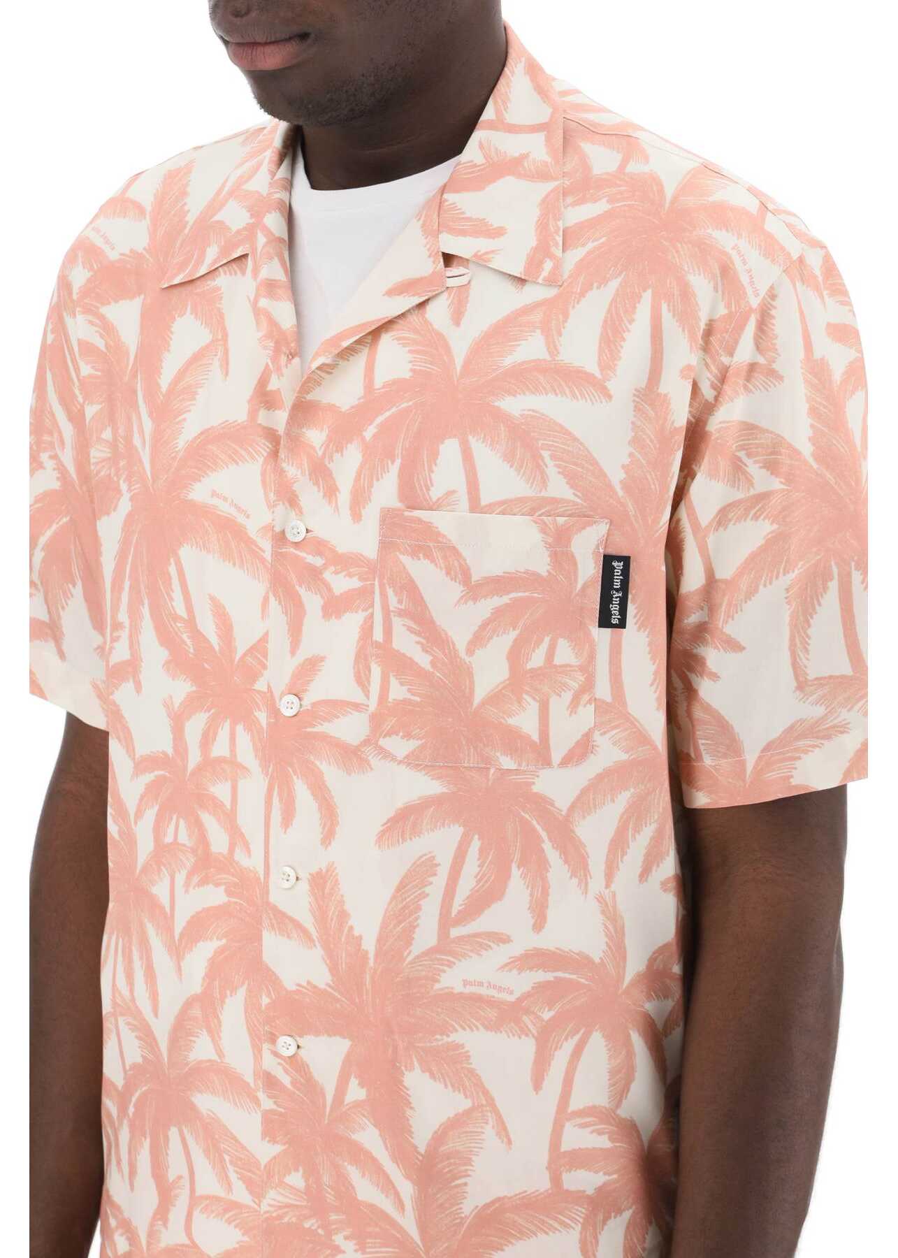 Palm Angels bowling shirt crafted in light viscose canvas with Palms motif printed throughout. It features cuban collar, french button placket and chest patch pocket detailed with logo label. Relaxed fit. The model is 187 cm tall and wears size IT 48.