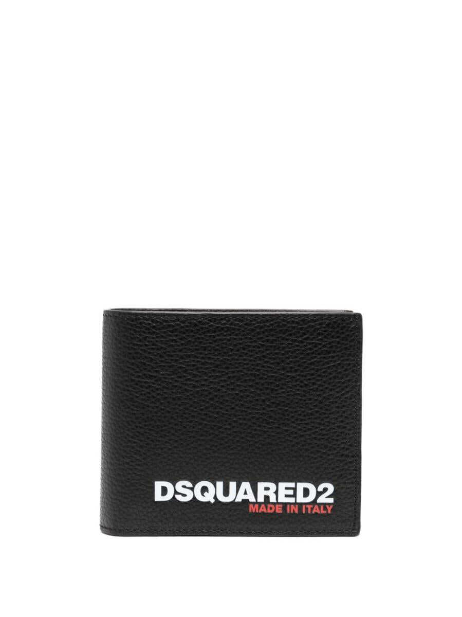 logo-debossed bi-fold wallet from DSQUARED2 featuring black/white, red, calf leather, pebbled texture, bi-fold design, debossed logo to the front, debossed internal logo, square body, internal card slots and internal note compartments.