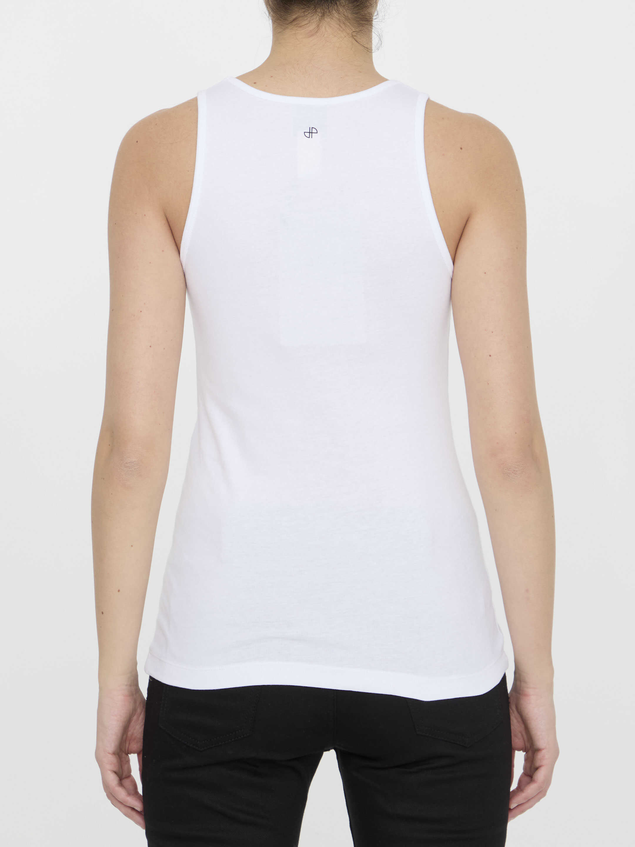 Iconic tank top in white cotton with Patou logo printed on the front and JP monogram printed at the back of the neck. Slim fit.
