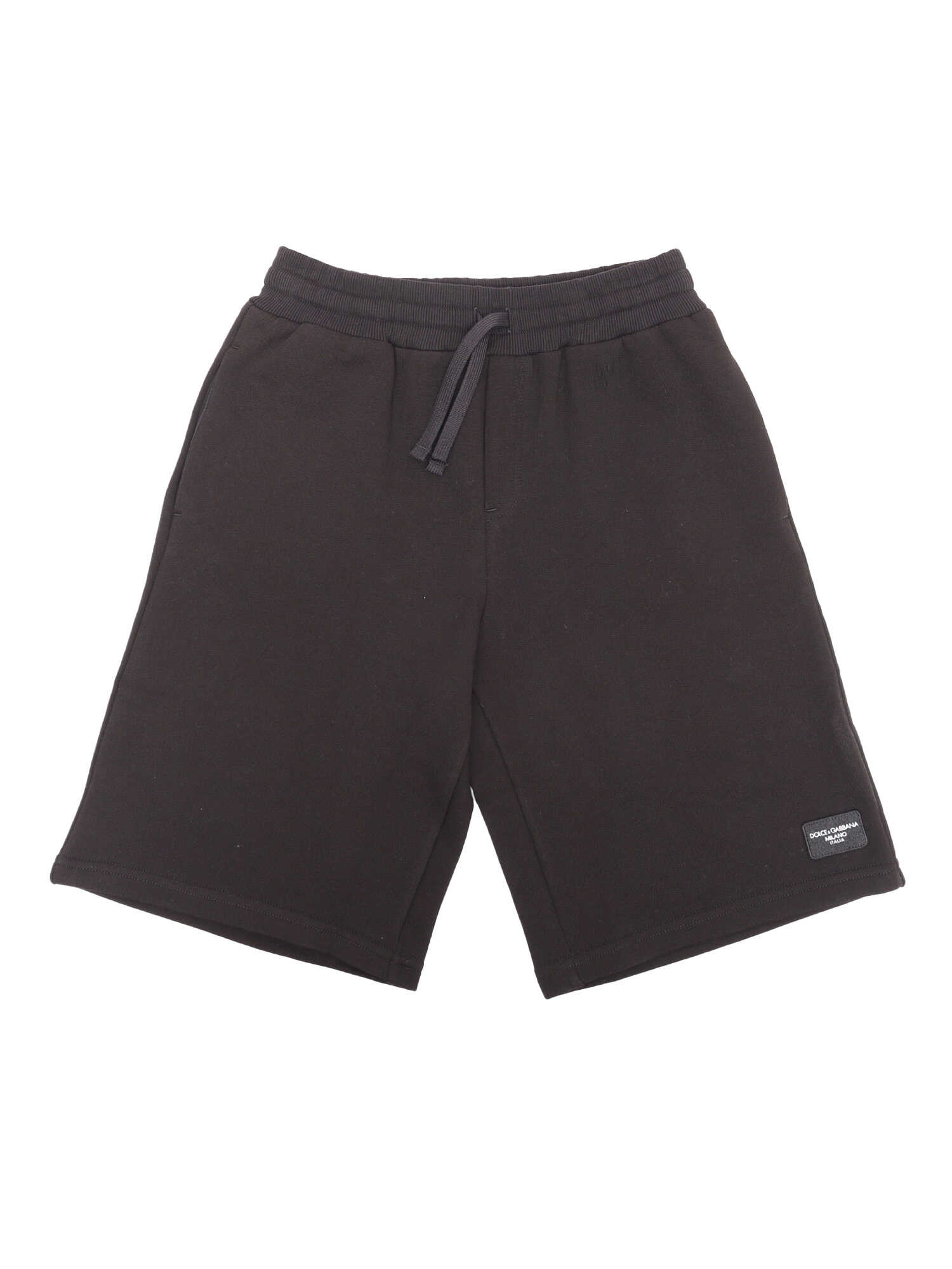D&G children's cotton Bermuda shorts, adjustable elastic band at the waist, D&G logo plate on the front, small rear welt pocket.