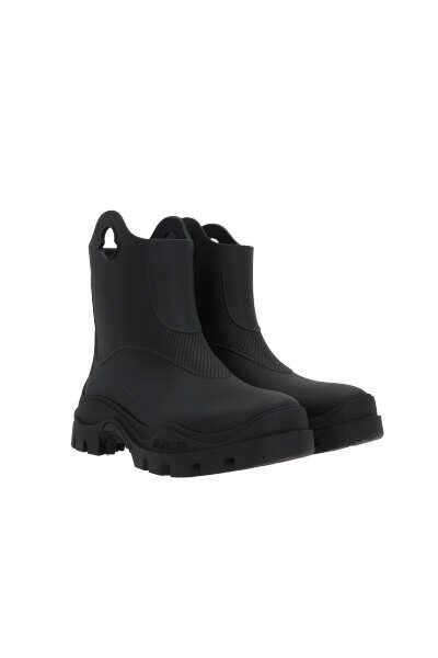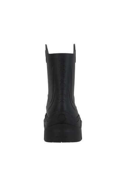 Moncler's rain boots entirely crafted in black rubber with a logo-shaped cut-out details. Featuring a round-toe silhouette, fabric lining and lug rubber sole. The design is completed by the iconic raised lettering logo at back.