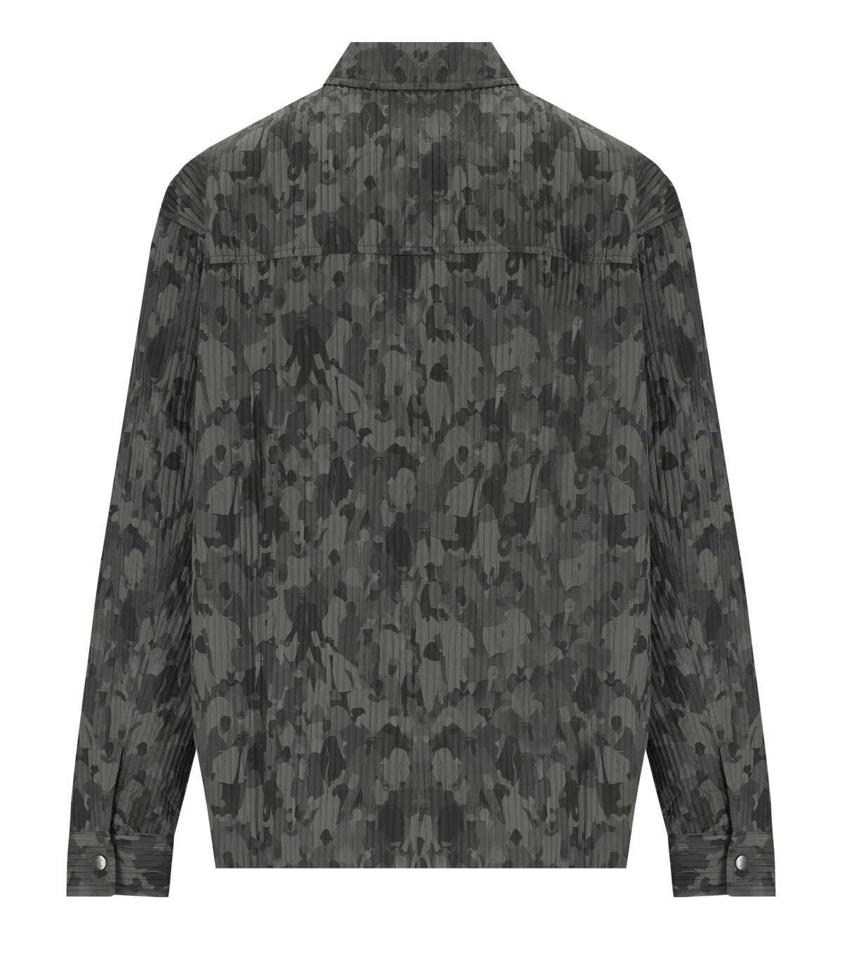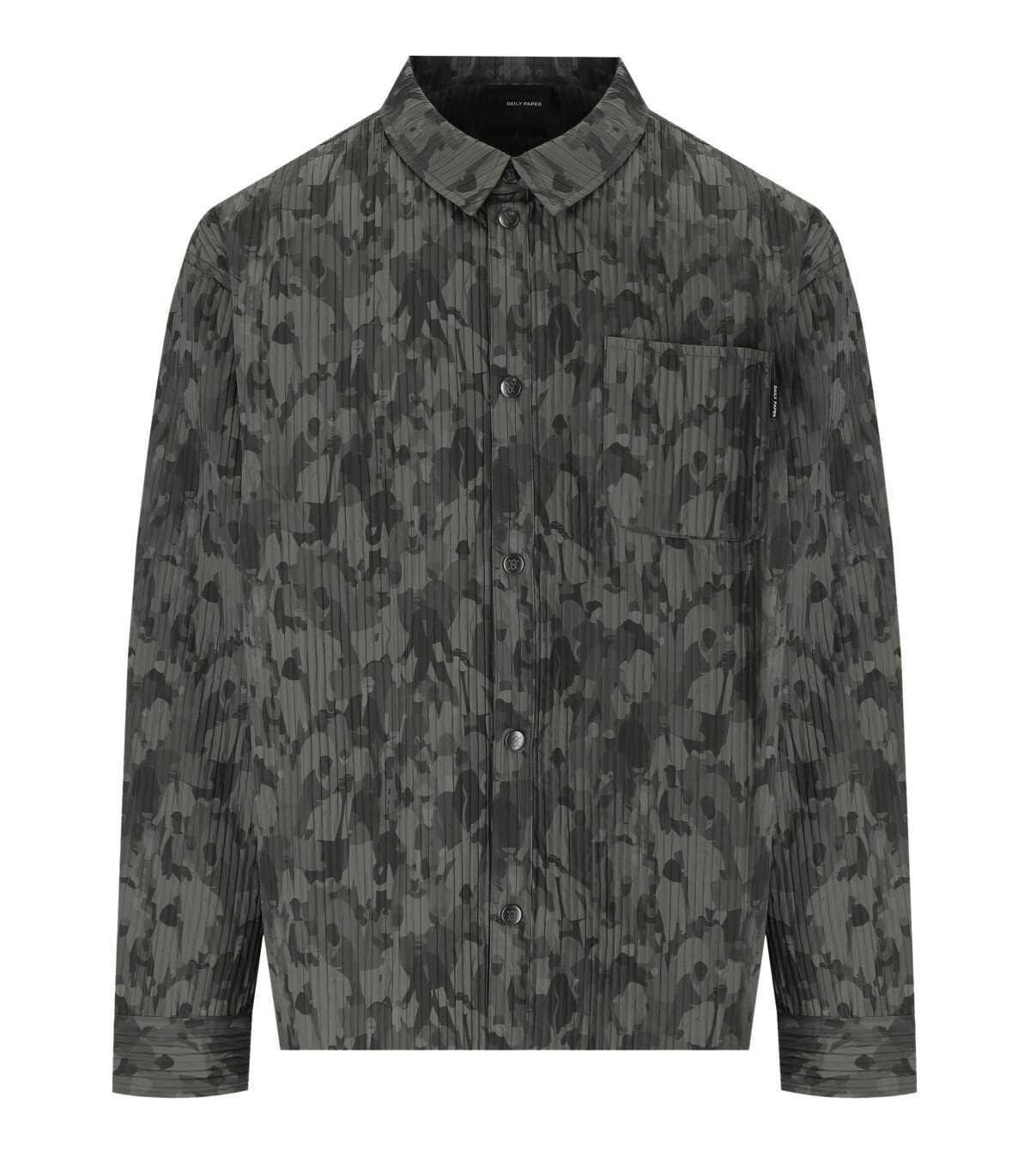Adetola Community shirt by Daily Paper made from technical fabric in shades of green, with needle punch work. It features a chest pocket and button closure. Relaxed fit.