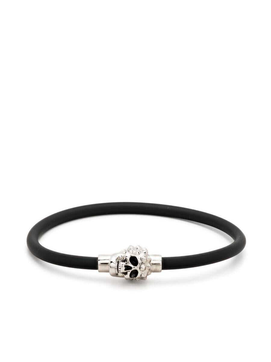 skull-stud tubular bracelet from Alexander McQueen featuring black, skull stud embellishment, silver-tone hardware and magnetic fastening.