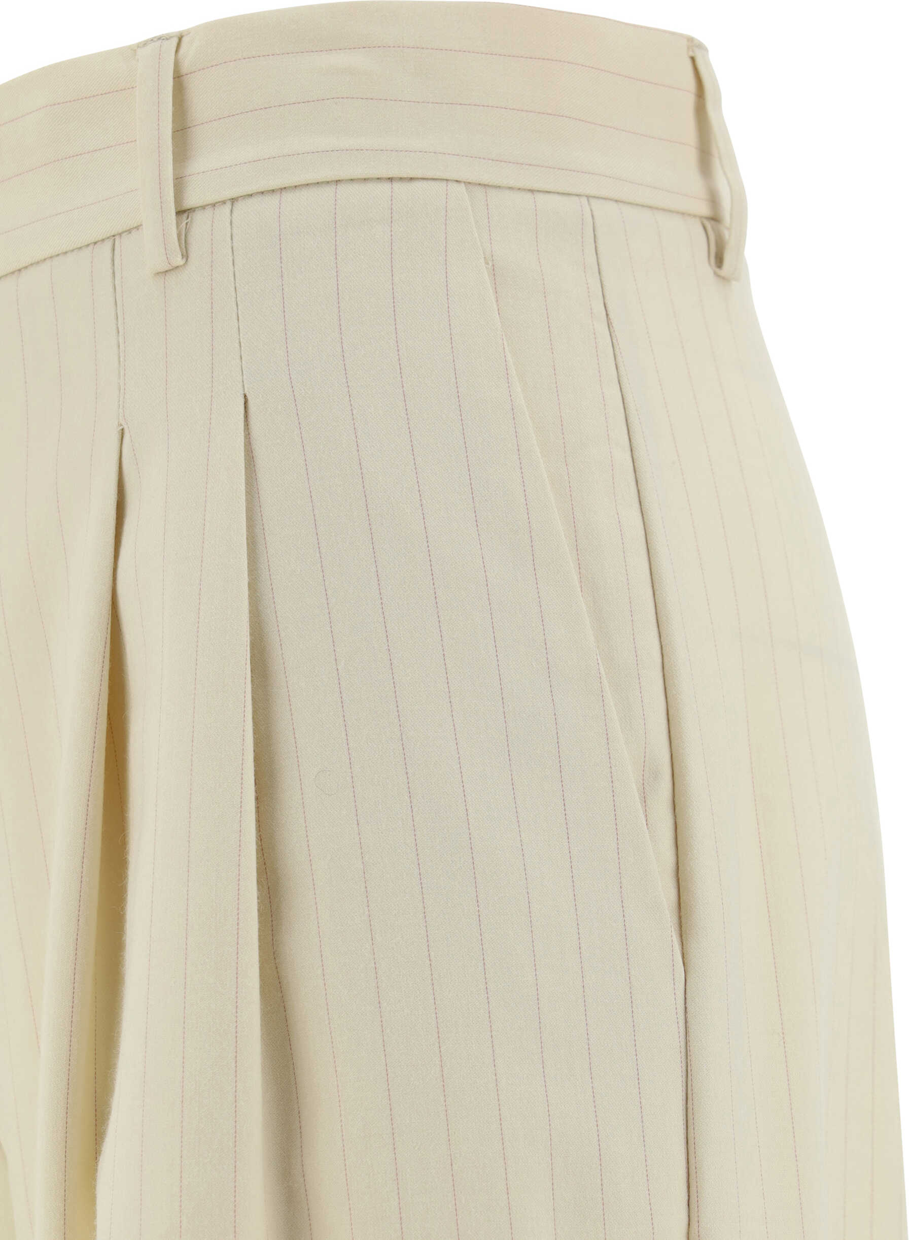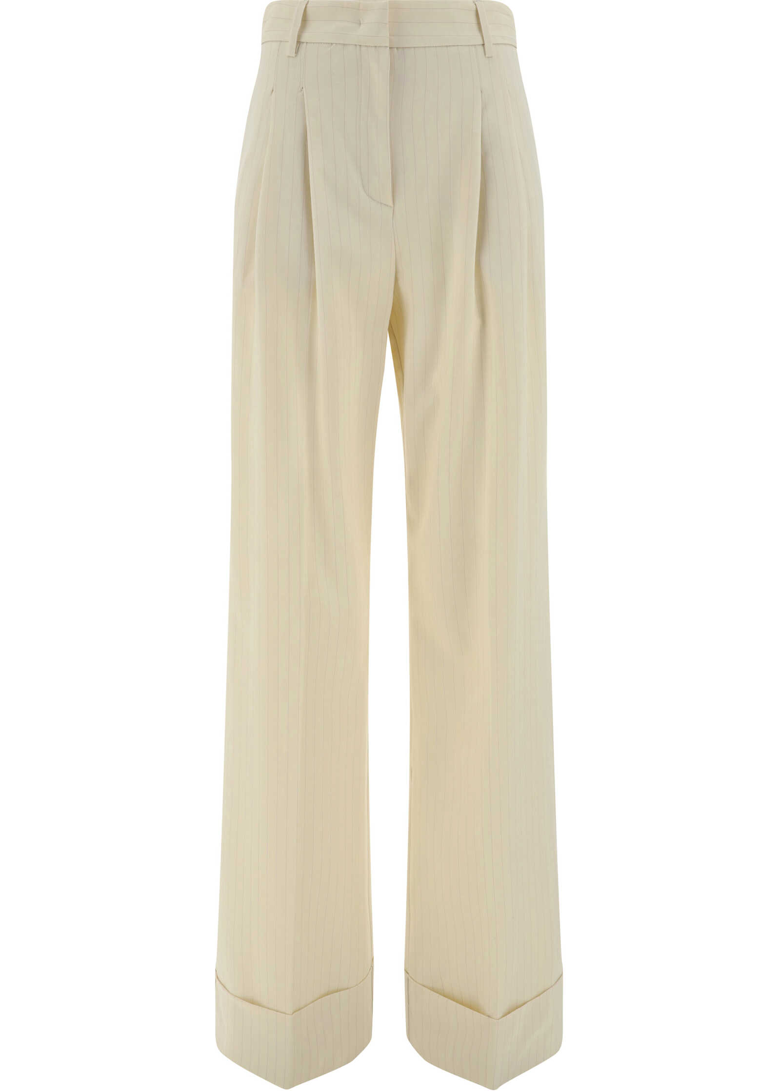 Nathalie Pants by The Andamane, palazzo style, front button and zipper closure, two side slash pockets, back welt pocket, waistband loops, striped pattern, turned-up hem, regular fit.