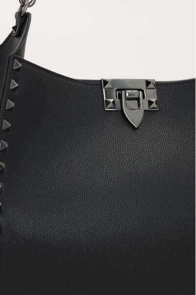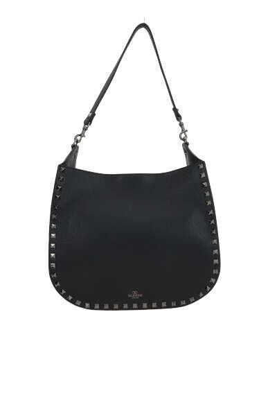 black calf leather pebbled texture debossed logo to the rear signature Rockstud embellishment clasp fastening single detachable top handle adjustable detachable shoulder strap main compartment internal slip pocket debossed internal logo full lining silver-tone hardware This piece comes complete with a protective dust bag.