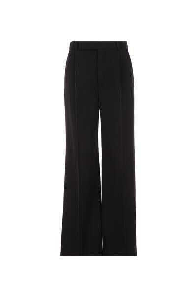 Saint Laurent's straight-leg pants crafted in black responsible wool. Featuring button / hook-and-eye / zip closure, belt loops, side slanted pockets, back double-welt pockets and central pinces. Partially lined interior.
