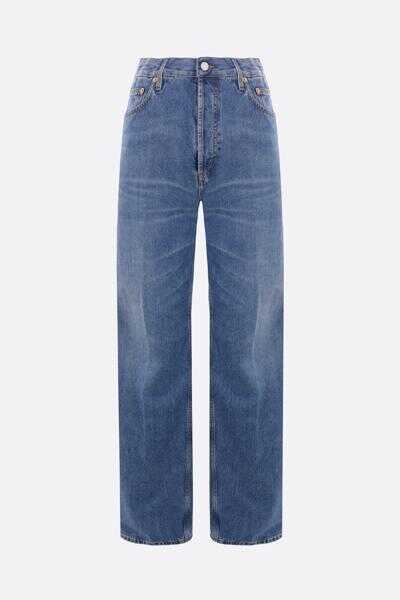 Gucci's oversize jeans crafted in blue washed cotton denim. Featuring elasticated waistband, metal button closure, belt loops and five classic pockets. The design is completed by the iconic logo patch at back.