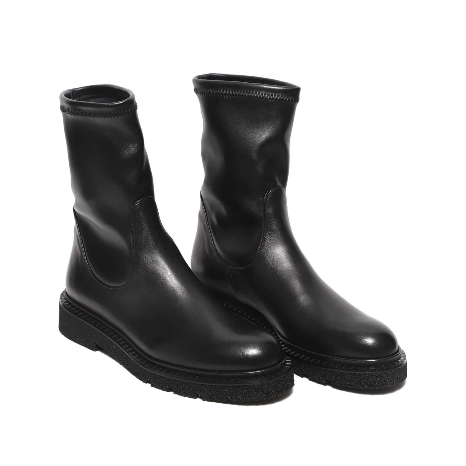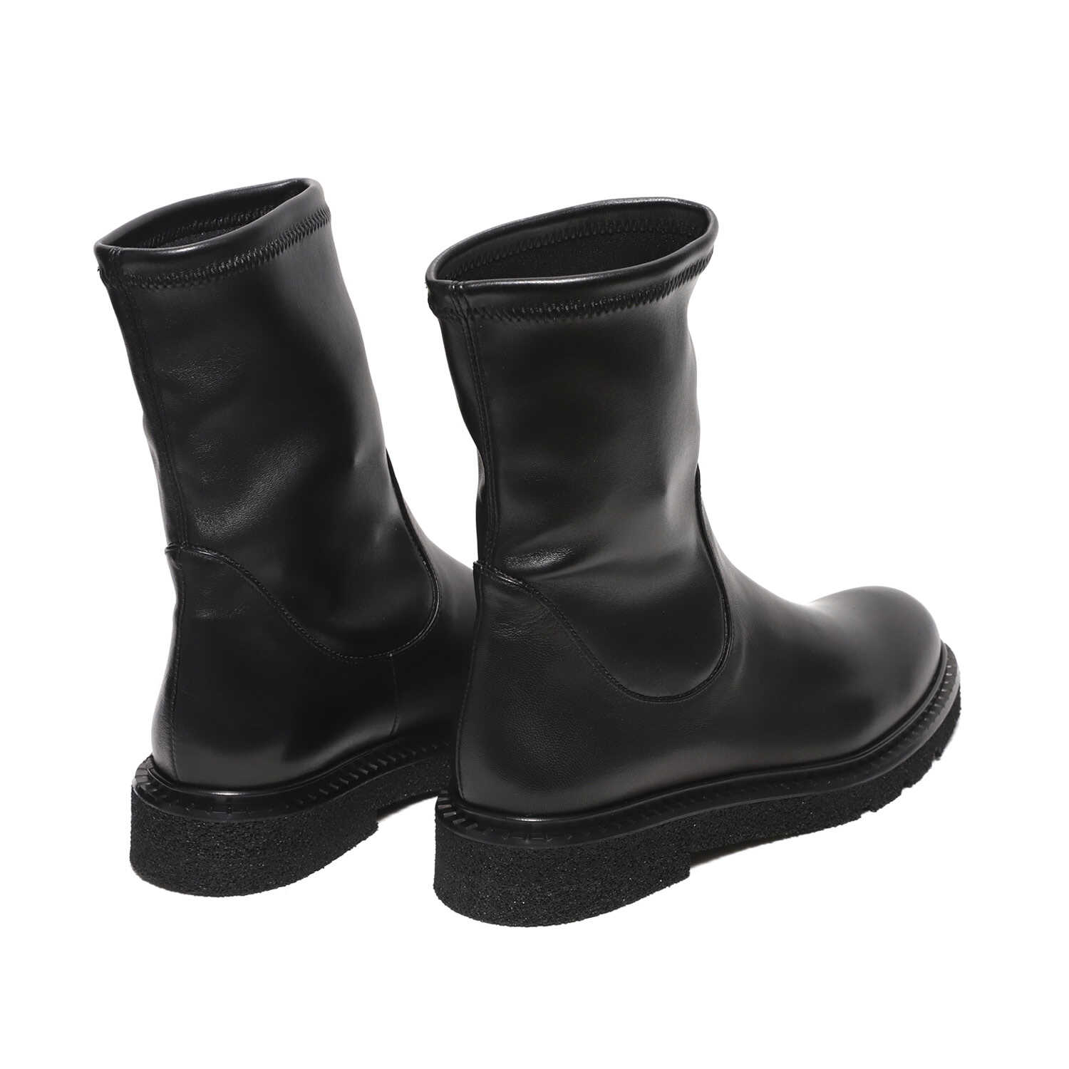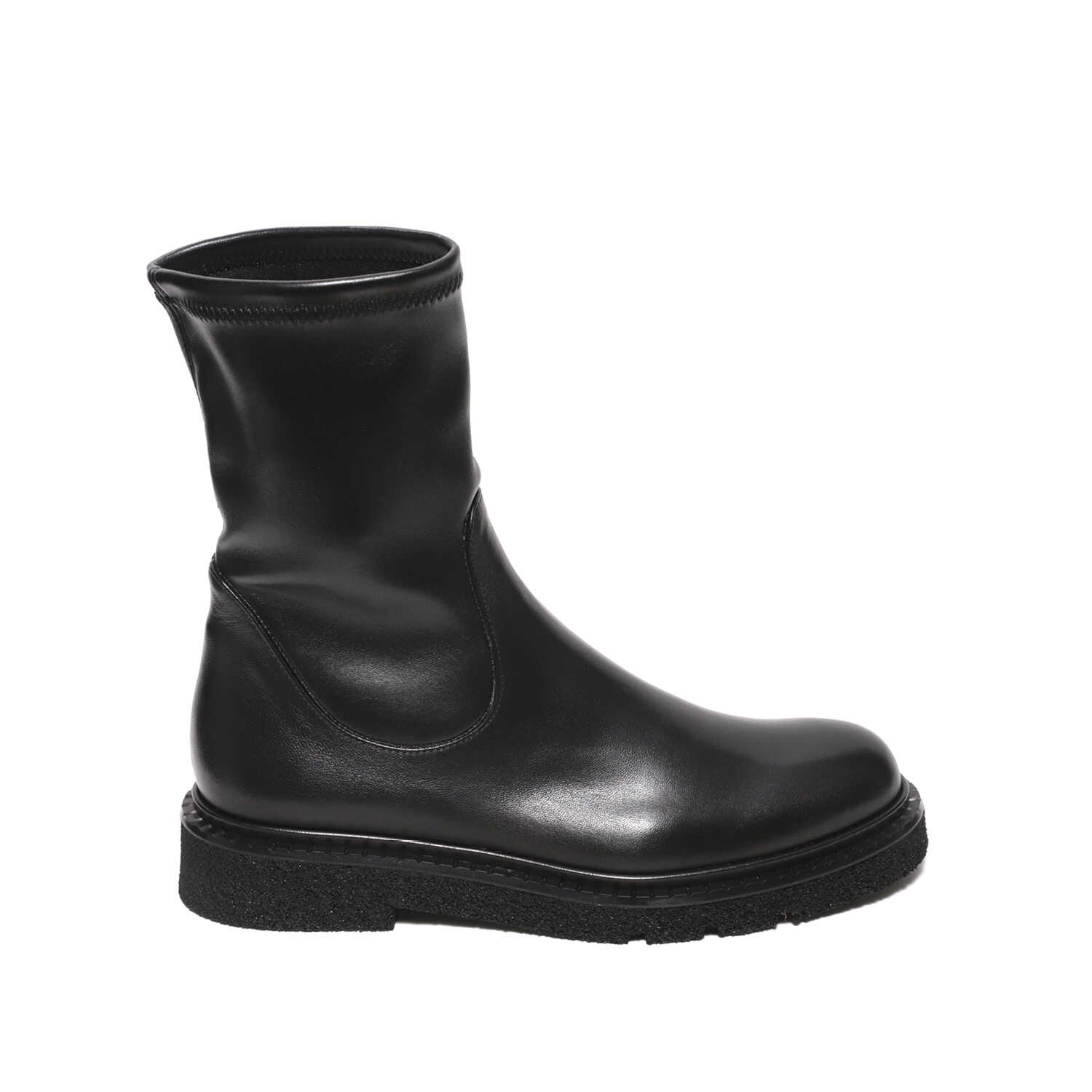 Stivaletto in nappa nera elasticizzata.Suola in para.Tacco di cm 3.Calzata regolare.