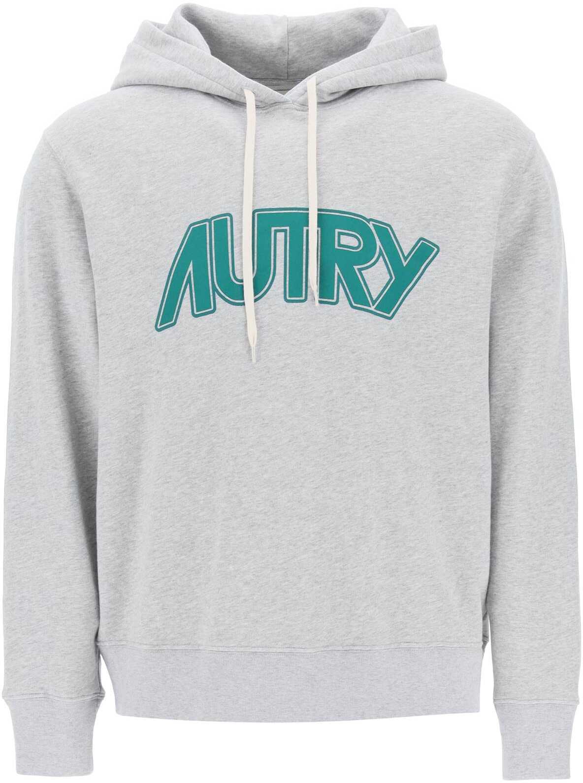 Autry sweatshirt crafted in pure cotton french terry with maxi logo print on the chest. It features adjustable hood with drawstring and micro-ribbed cuffs and hem. Relaxed fit. The model is 187 cm tall and wears size L.