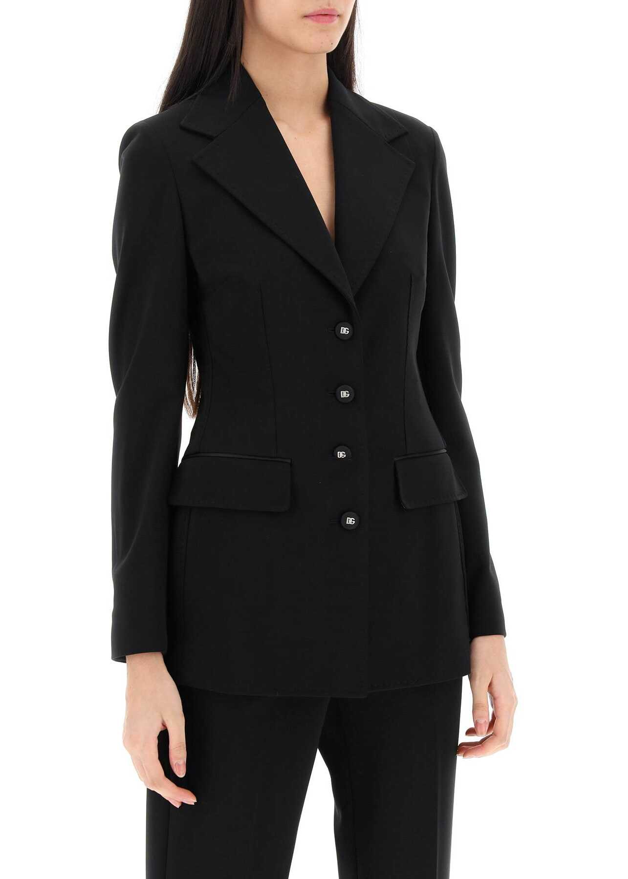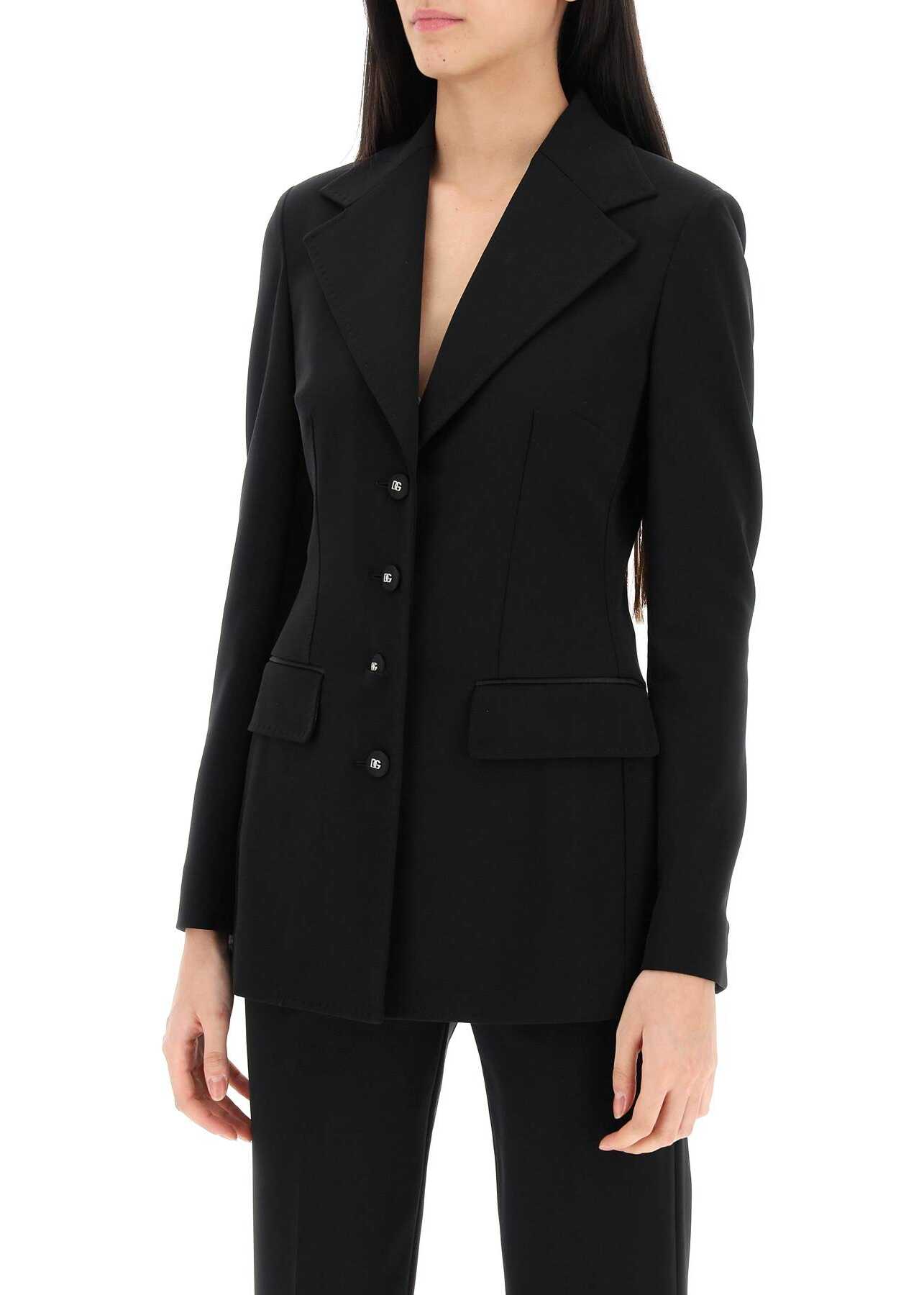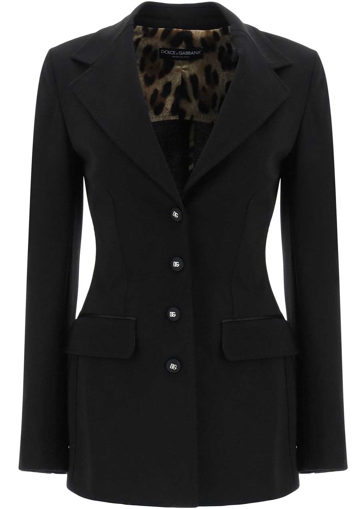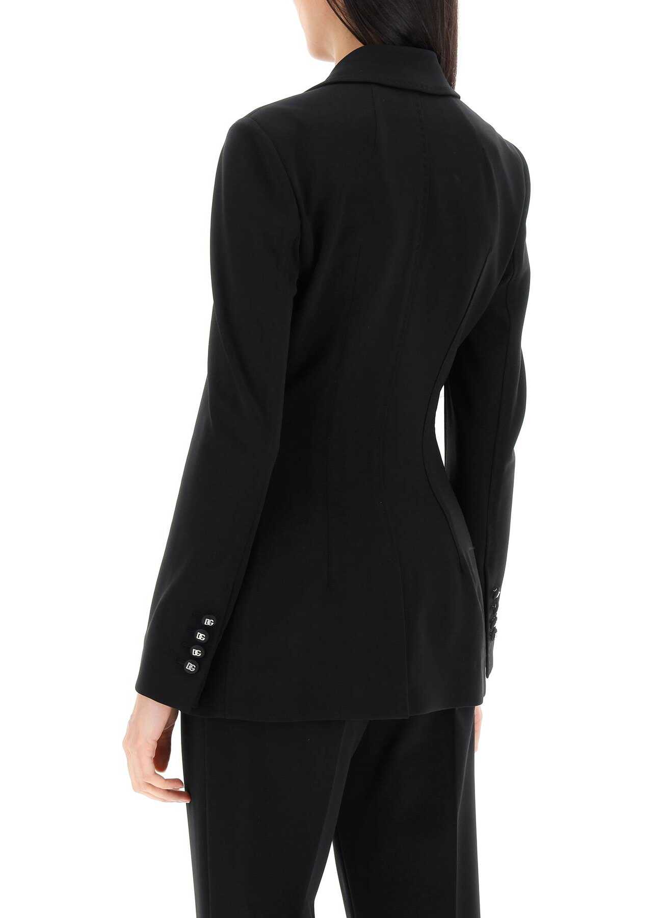 Dolce&Gabbana jacket crafted in Milano-stitch techno jersey, characterized by a single-breasted design with logoed grosgrain button closure. It features notched lapel, jetted pockets with flap, buttoned cuffs and back-center vent. Partially lined on the inside. Shaped cut. The model is 177 cm tall and wears size IT 40.