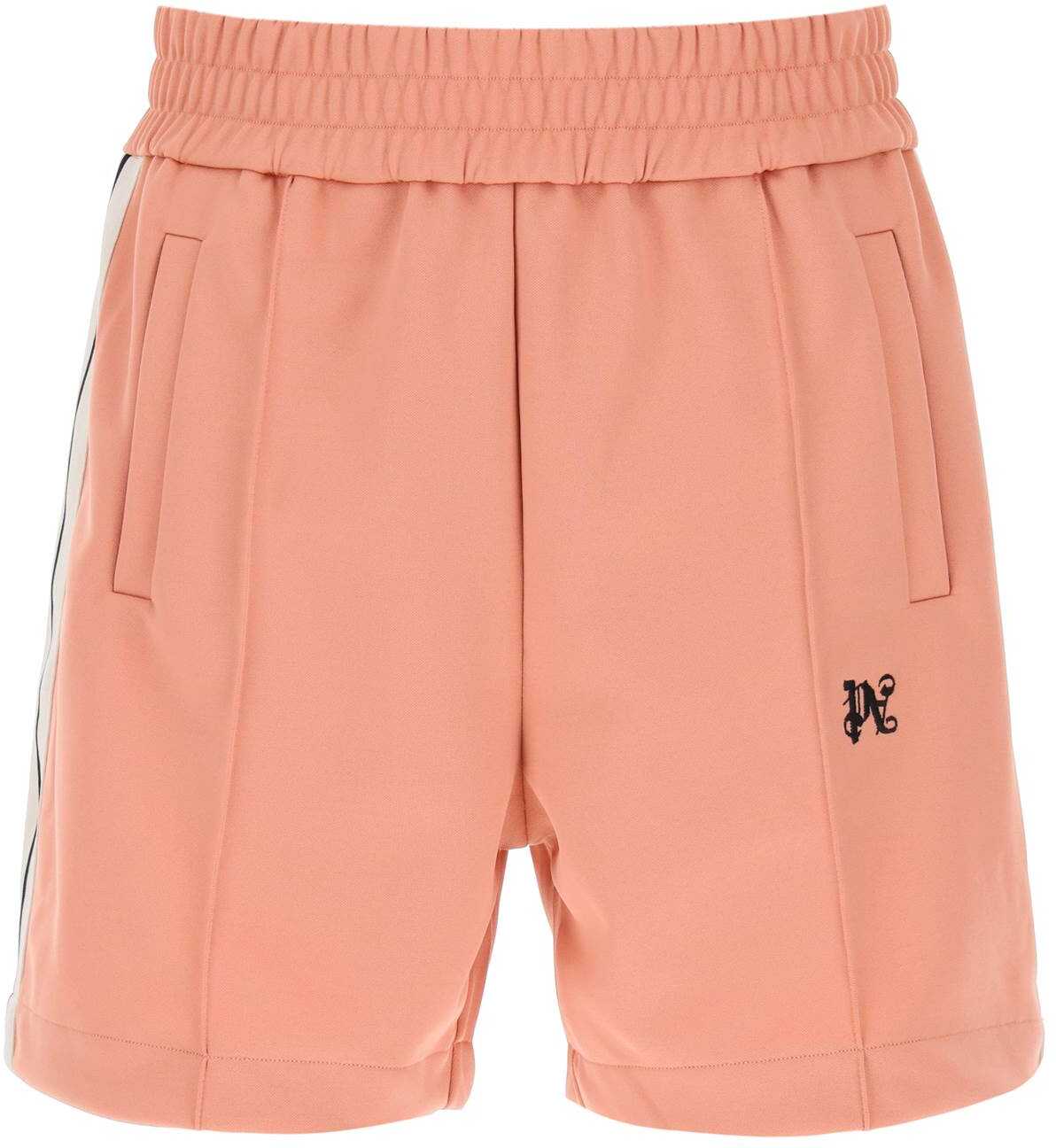 Palm Angels sweatshorts crafted in techno jersey with contrasting side bands and PA monogram embroidery on the front. They feature elasticated waistband, side welt pockets and pintucks on the front. Loose fit. The model is 187 cm tall and wears size L.