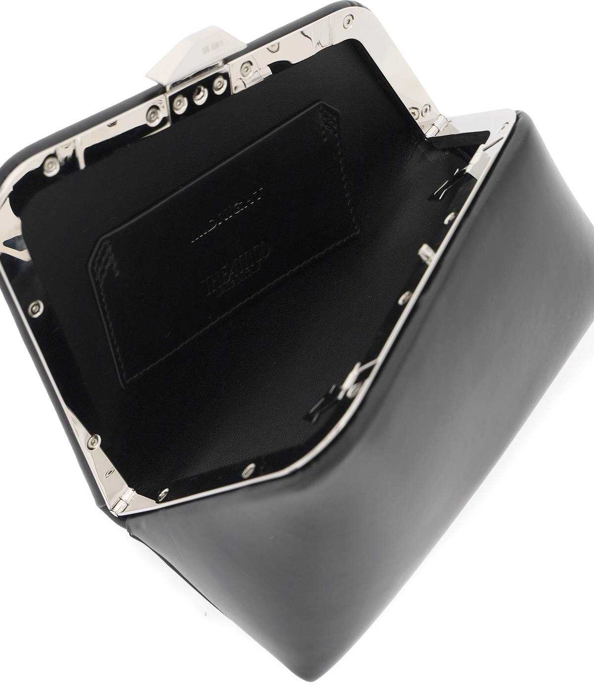 Midnight clutch by The Attico crafted in smooth leather and characterized by an asymmetrical design. It features top snap closure, leather-lined interior with one credit card slot, leather additional shoulder strap. FInished with gold-tone logo print at front and protective studs at base. Silver-finished metalware.
